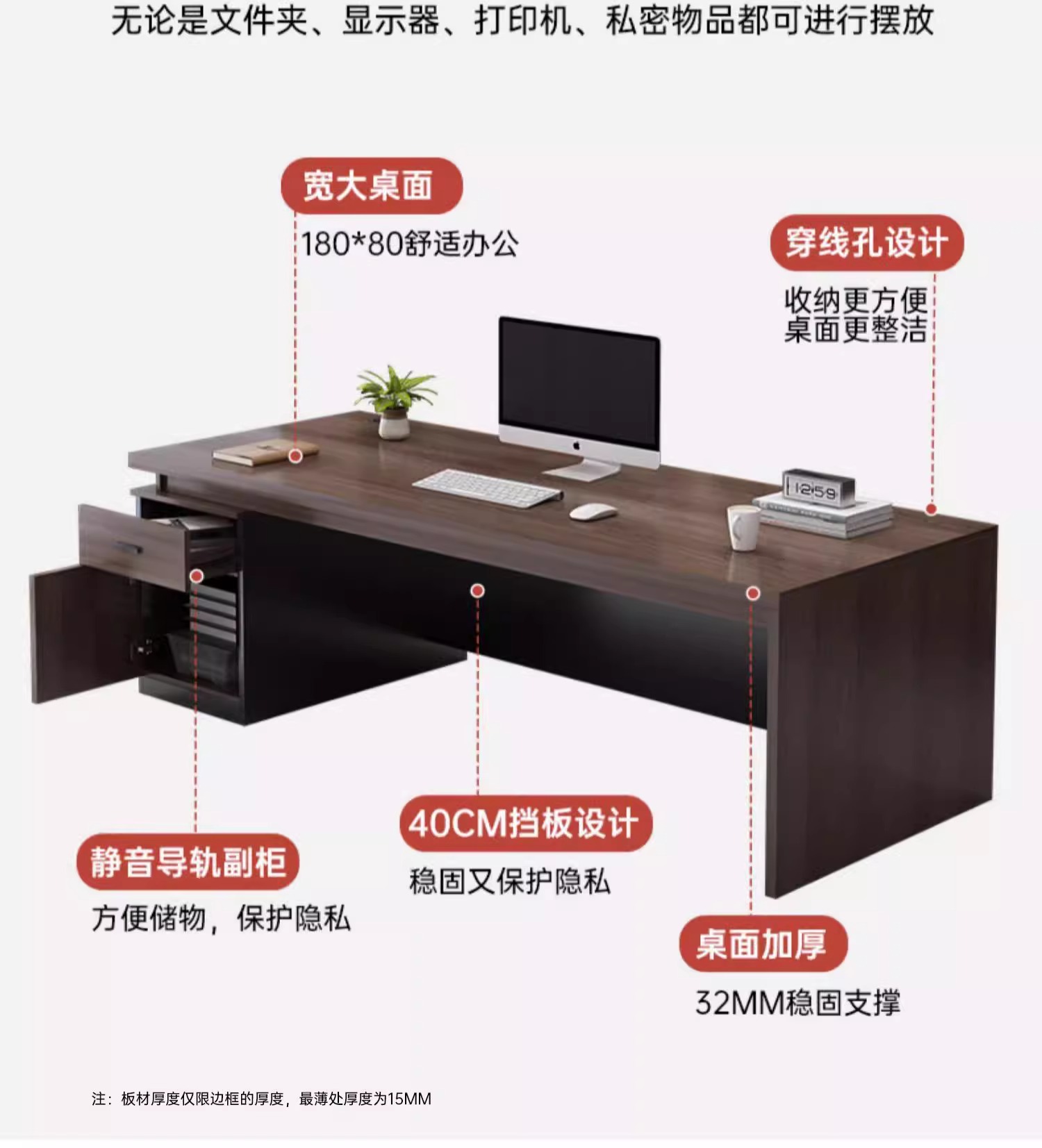 • [두꺼운 데스크탑 32 싱글 테이블 모델] 럭셔리 블랙 월넛 180*80