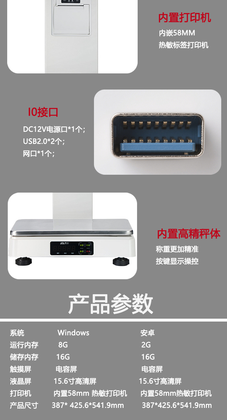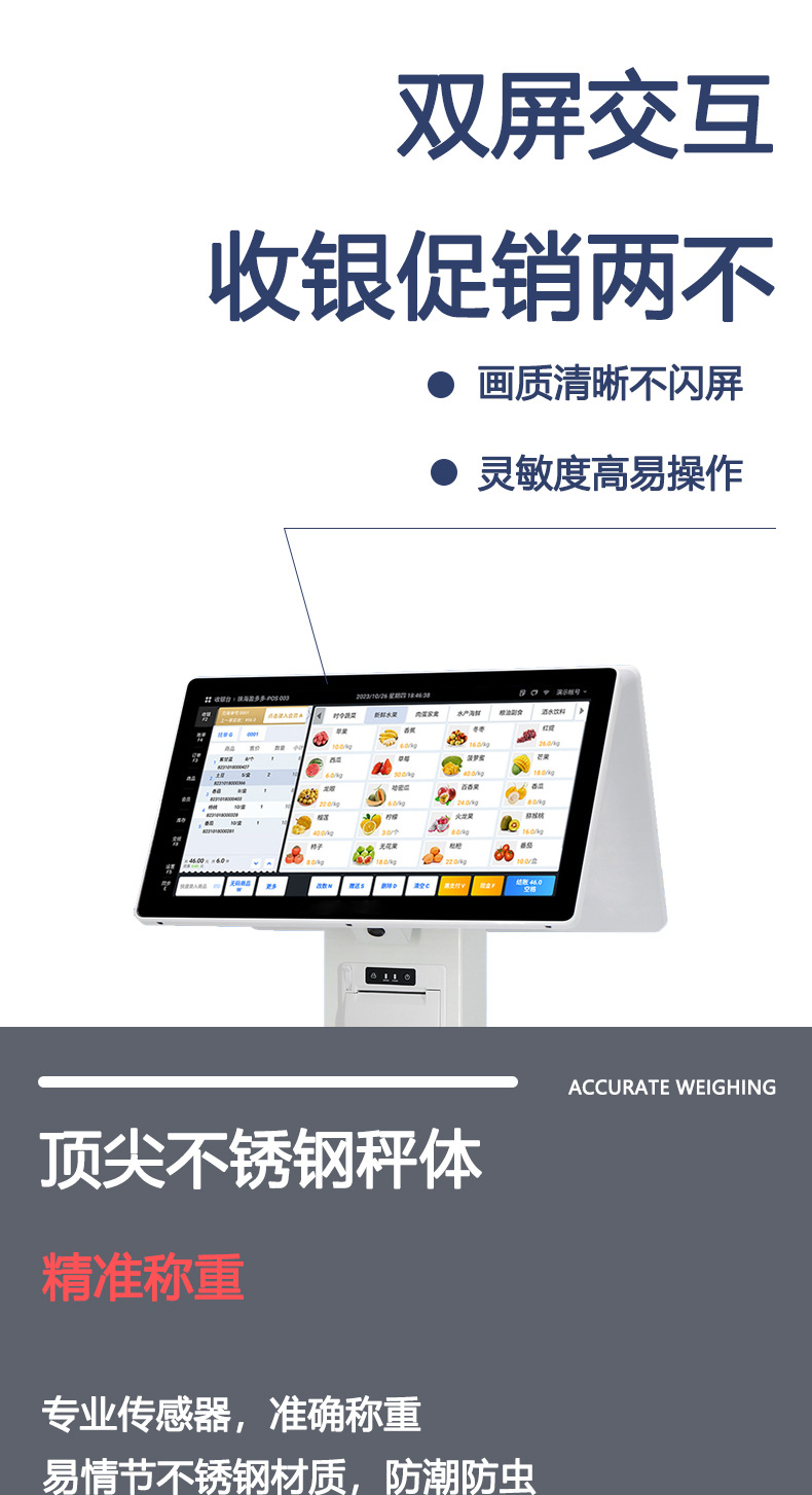 현장 판매용 터치형 계산대 전자저울, 단일/이중 화면, 슈퍼마켓, 조리식품/건과점 계산대용 무게 측정 상업용 전자저울스토어 가기