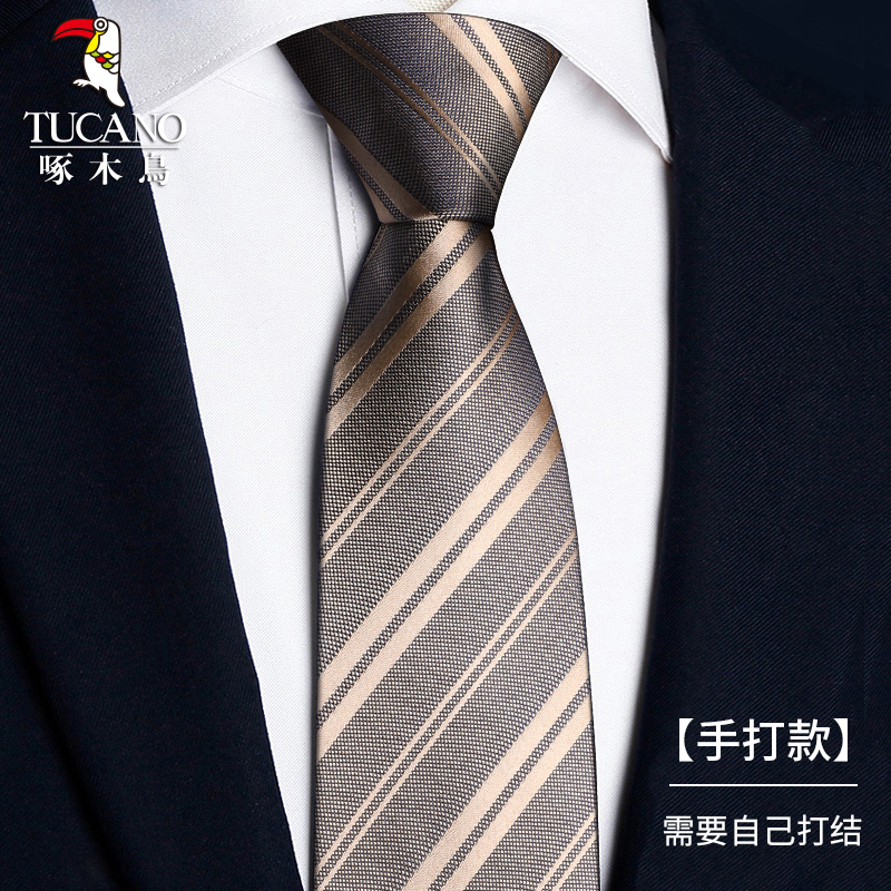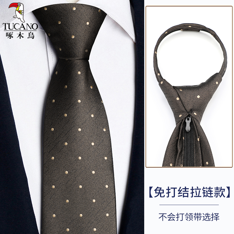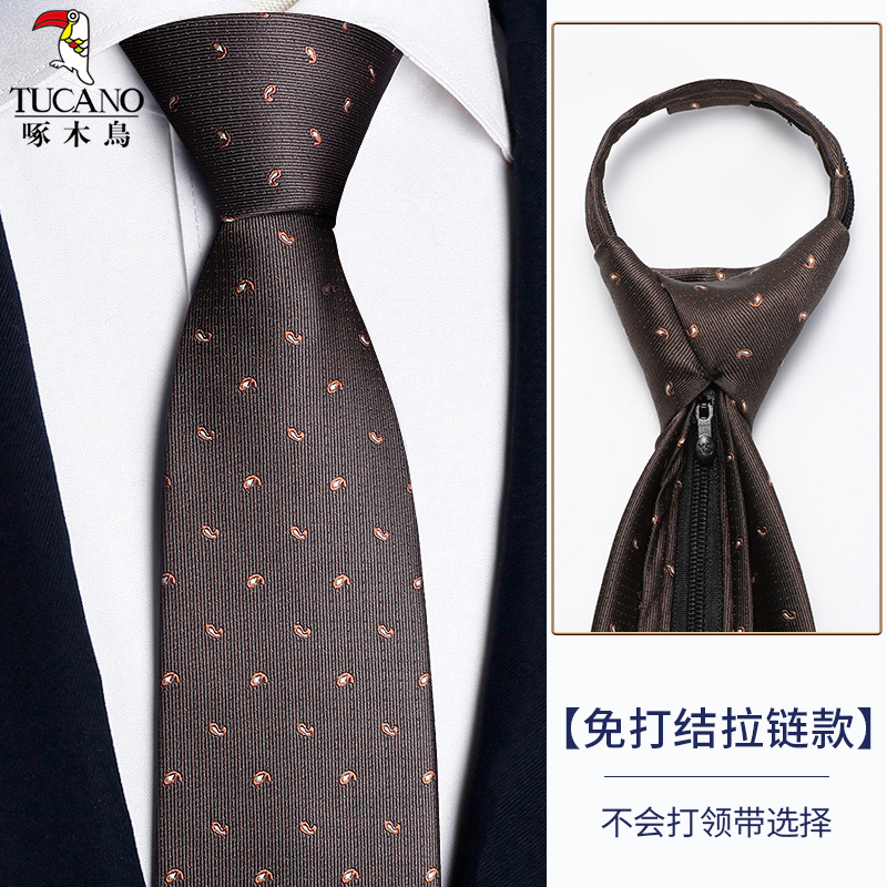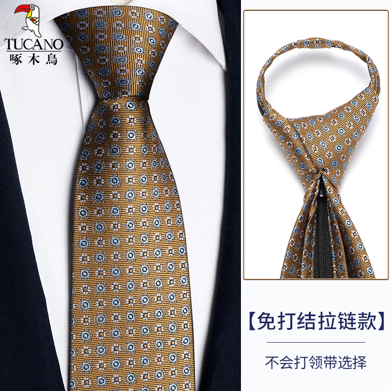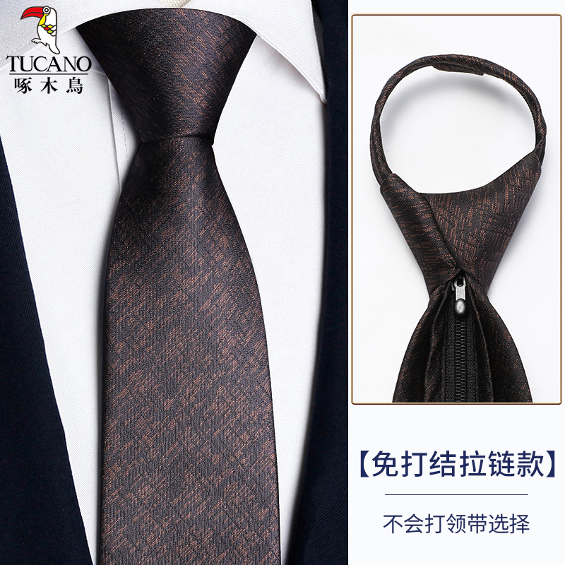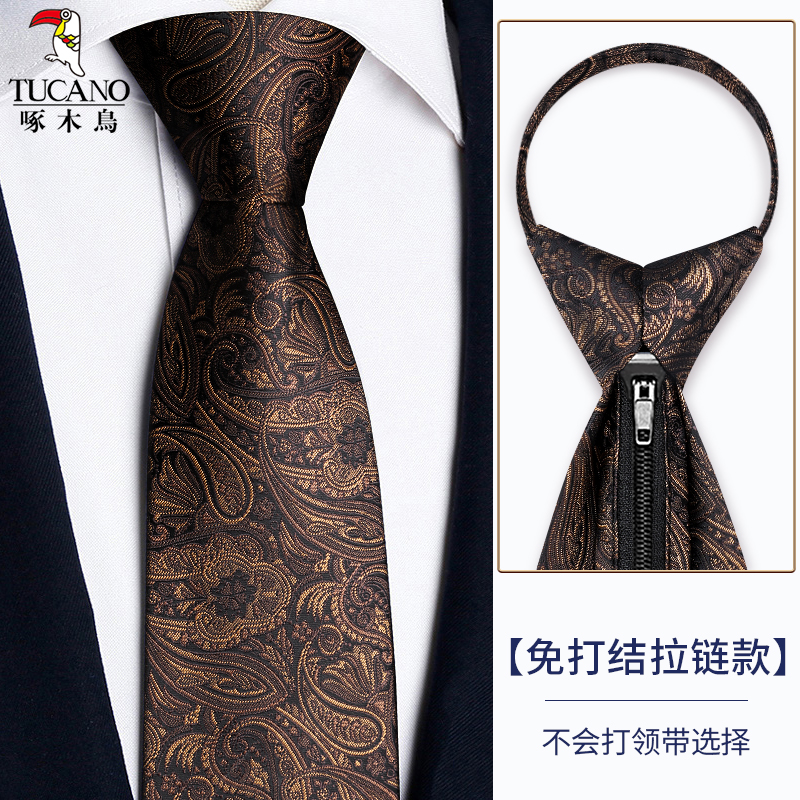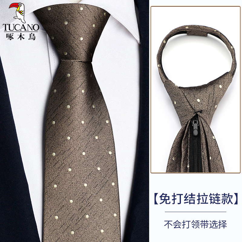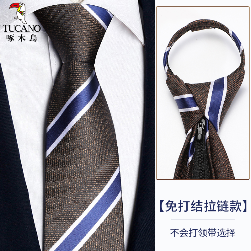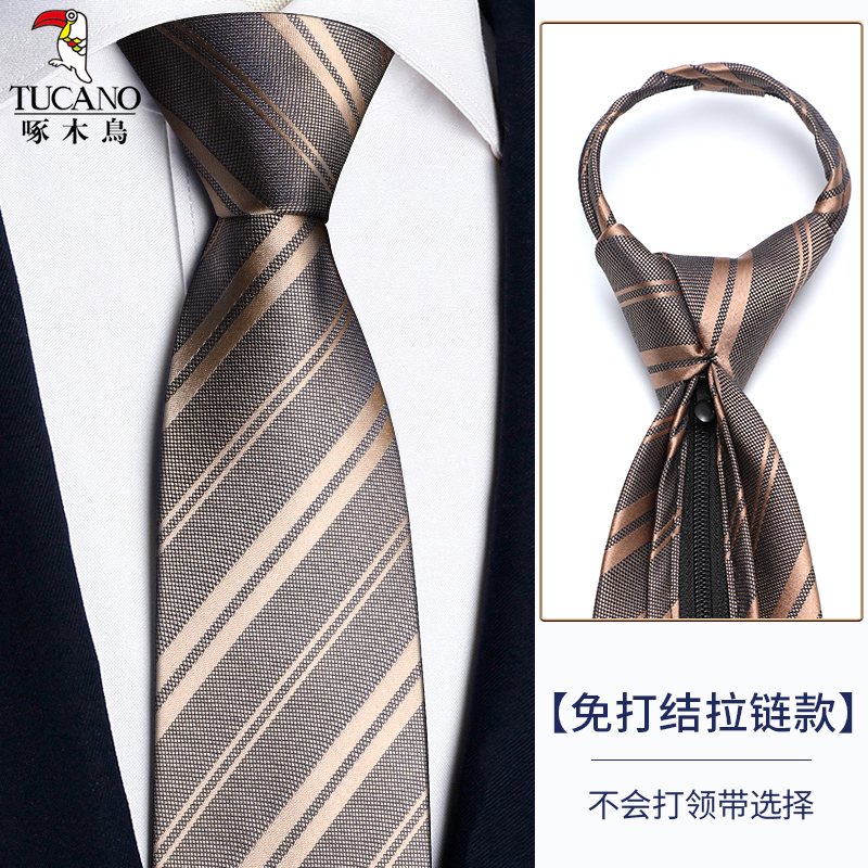 딱따구리 샴페인 컬러 넥타이 남성용 커피 컬러 비즈니스 매듭없는 지퍼 스타일 복고풍 줄무늬 결혼식 신랑 손으로 묶음스토어 가기
