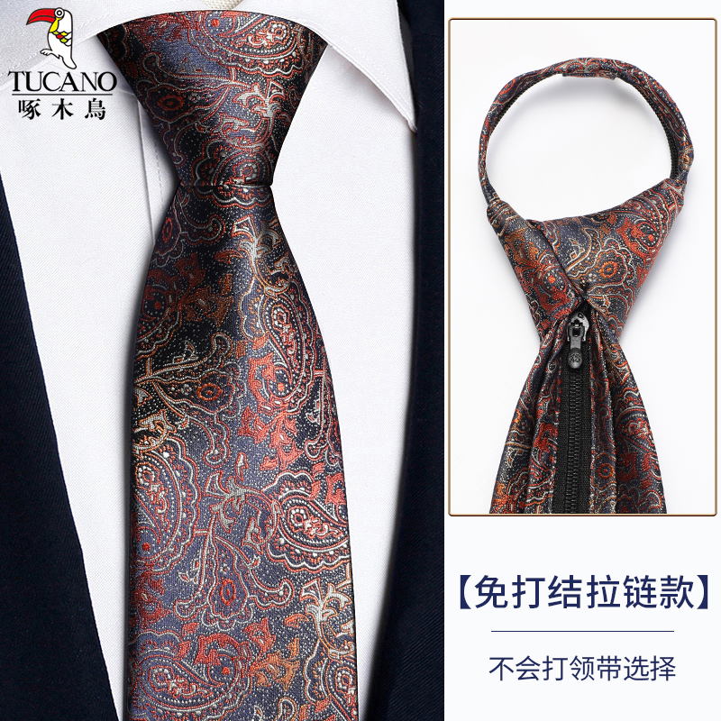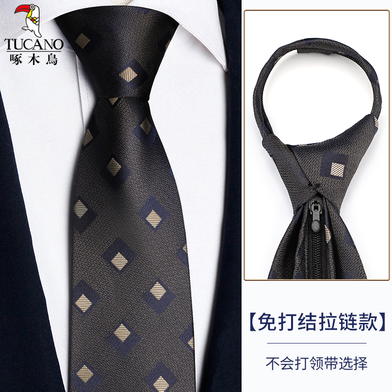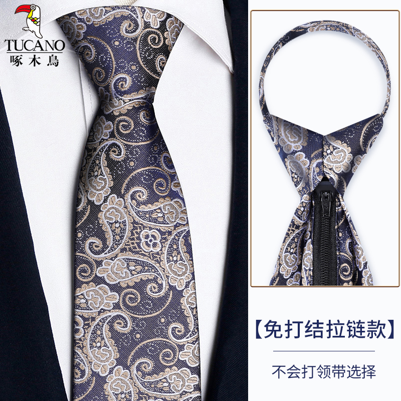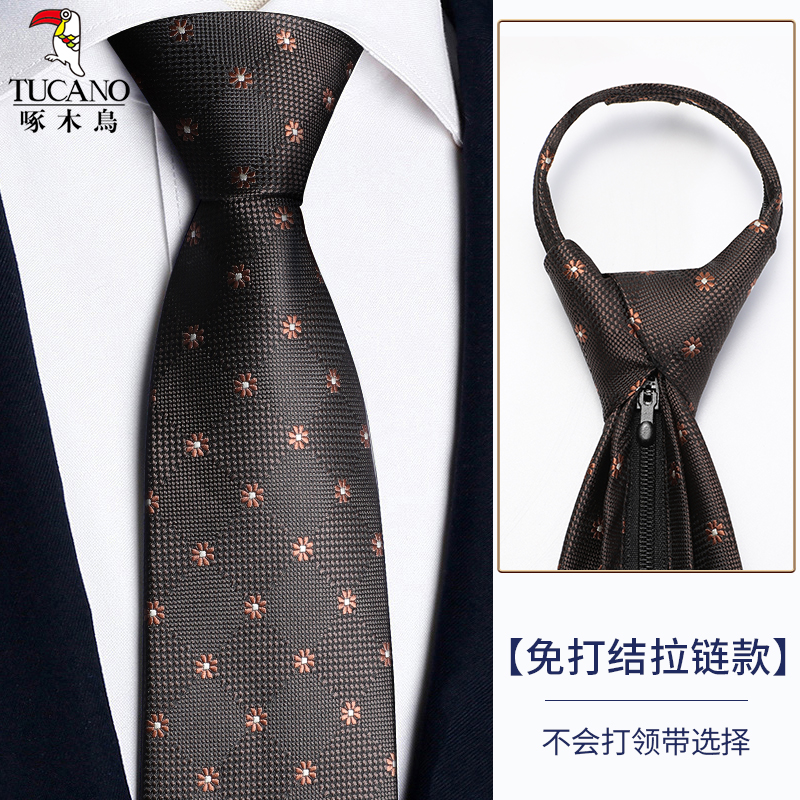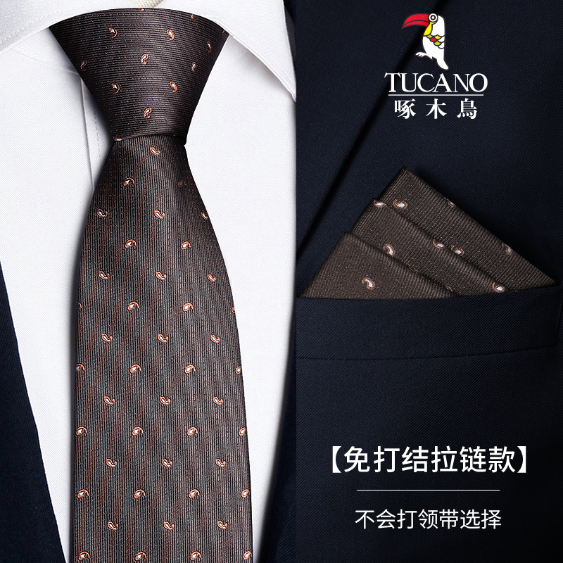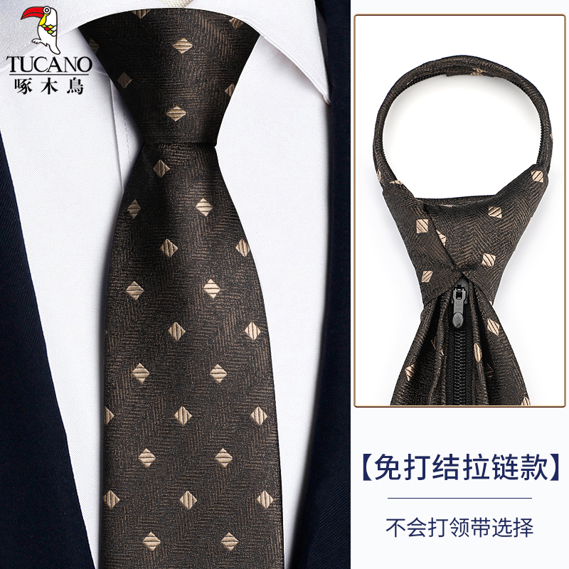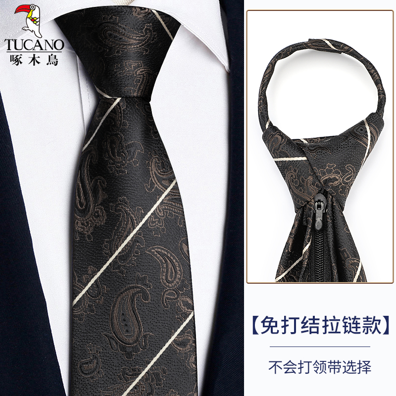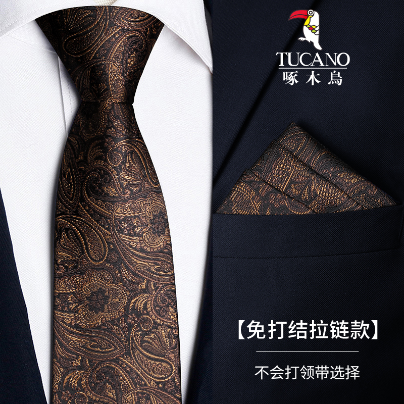 딱따구리 샴페인 컬러 넥타이 남성용 커피 컬러 비즈니스 매듭없는 지퍼 스타일 복고풍 줄무늬 결혼식 신랑 손으로 묶음스토어 가기