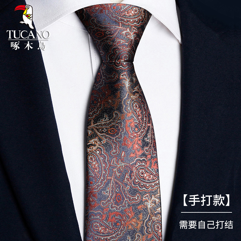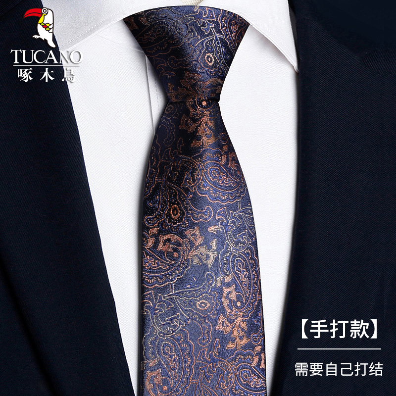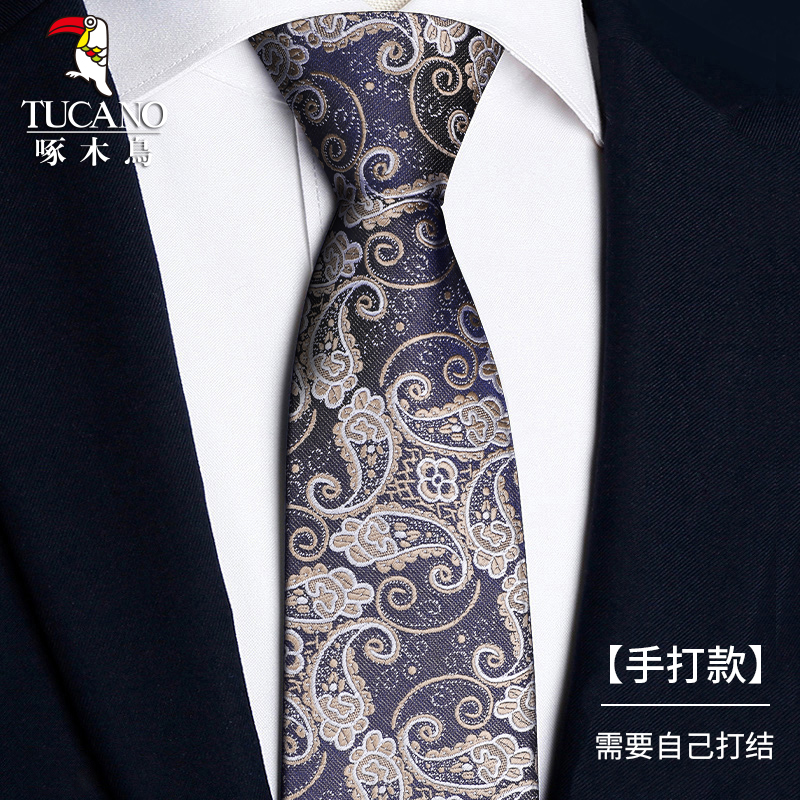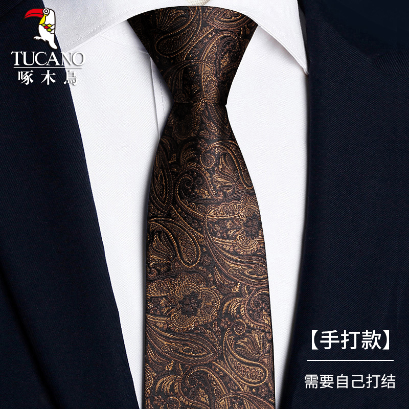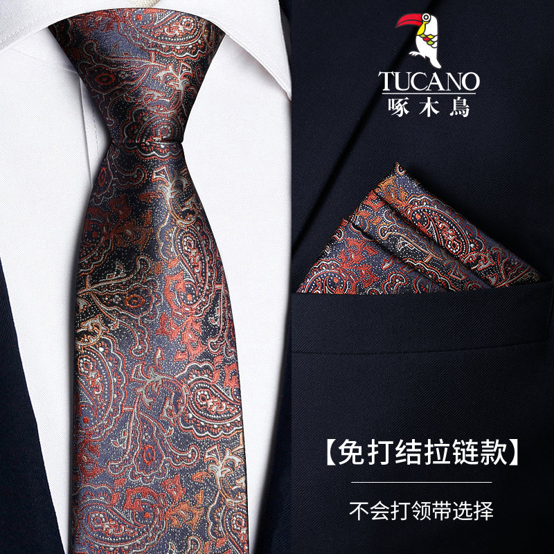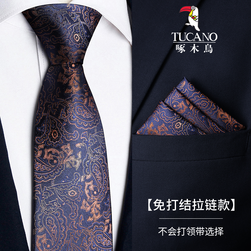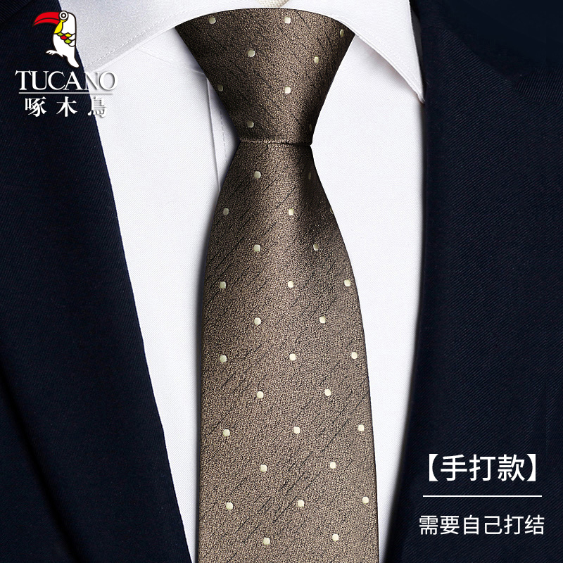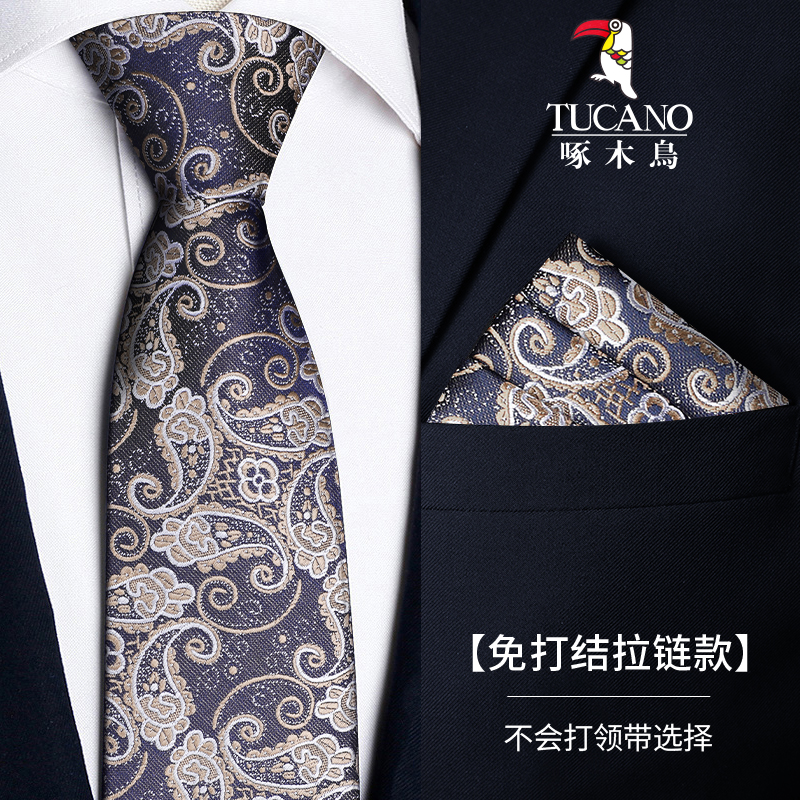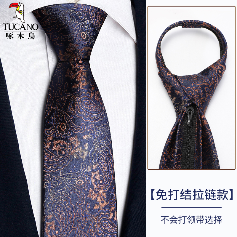 딱따구리 샴페인 컬러 넥타이 남성용 커피 컬러 비즈니스 매듭없는 지퍼 스타일 복고풍 줄무늬 결혼식 신랑 손으로 묶음스토어 가기