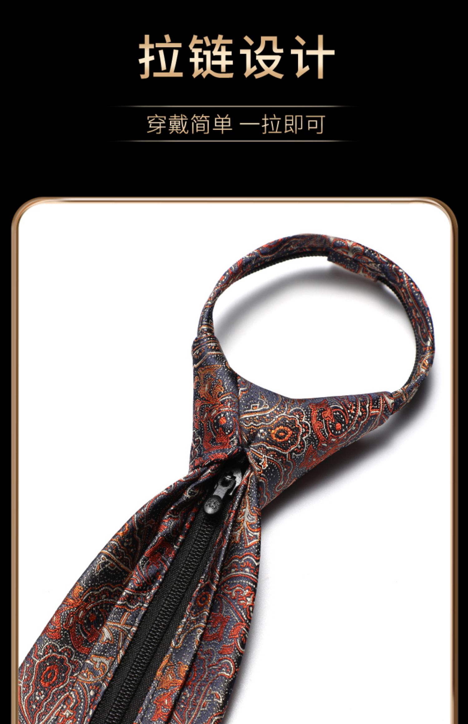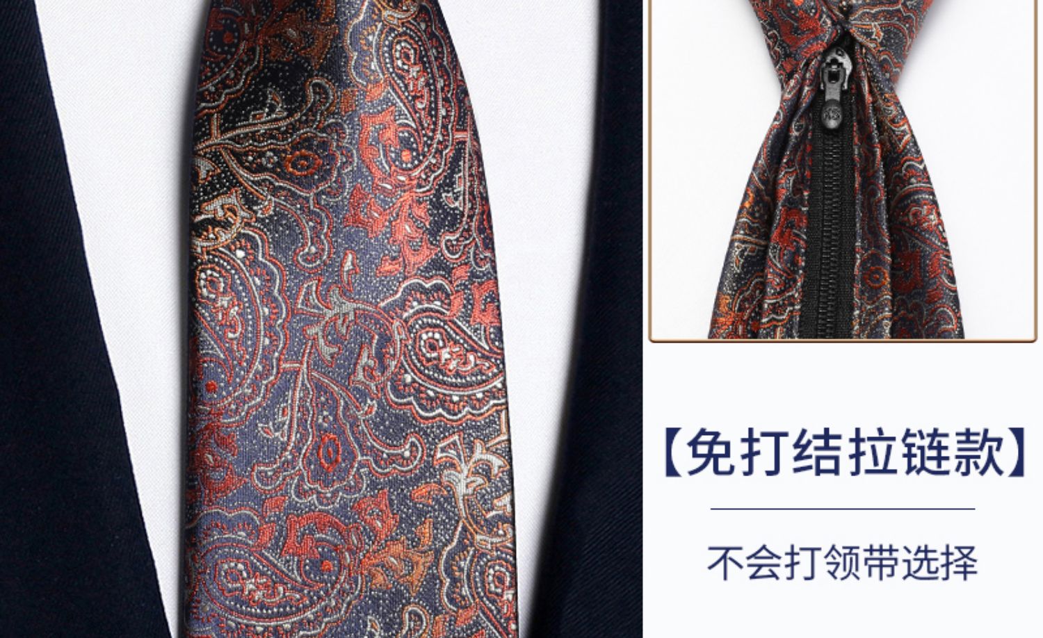 • 지퍼 스타일 - 네이비 블루 그라데이션 캐슈 꽃 + 포켓 스퀘어