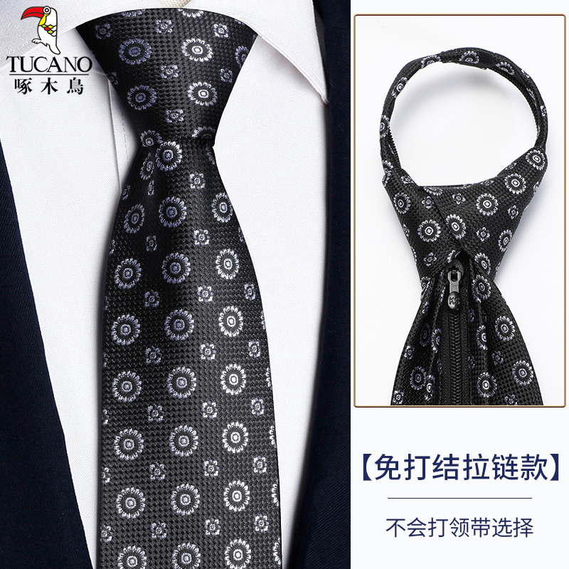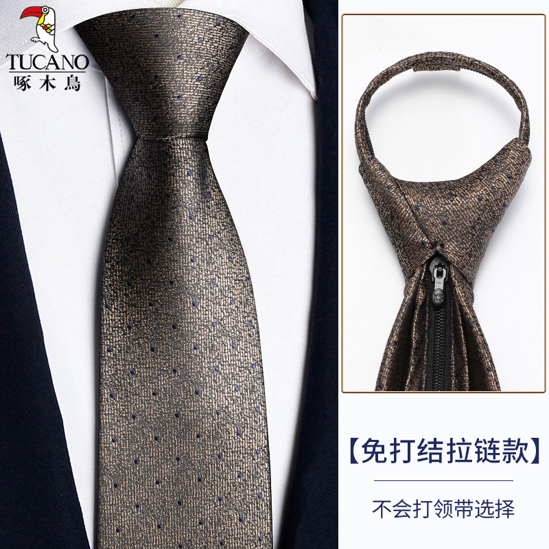딱따구리 샴페인 컬러 넥타이 남성용 커피 컬러 비즈니스 매듭없는 지퍼 스타일 복고풍 줄무늬 결혼식 신랑 손으로 묶음