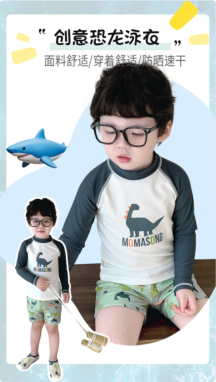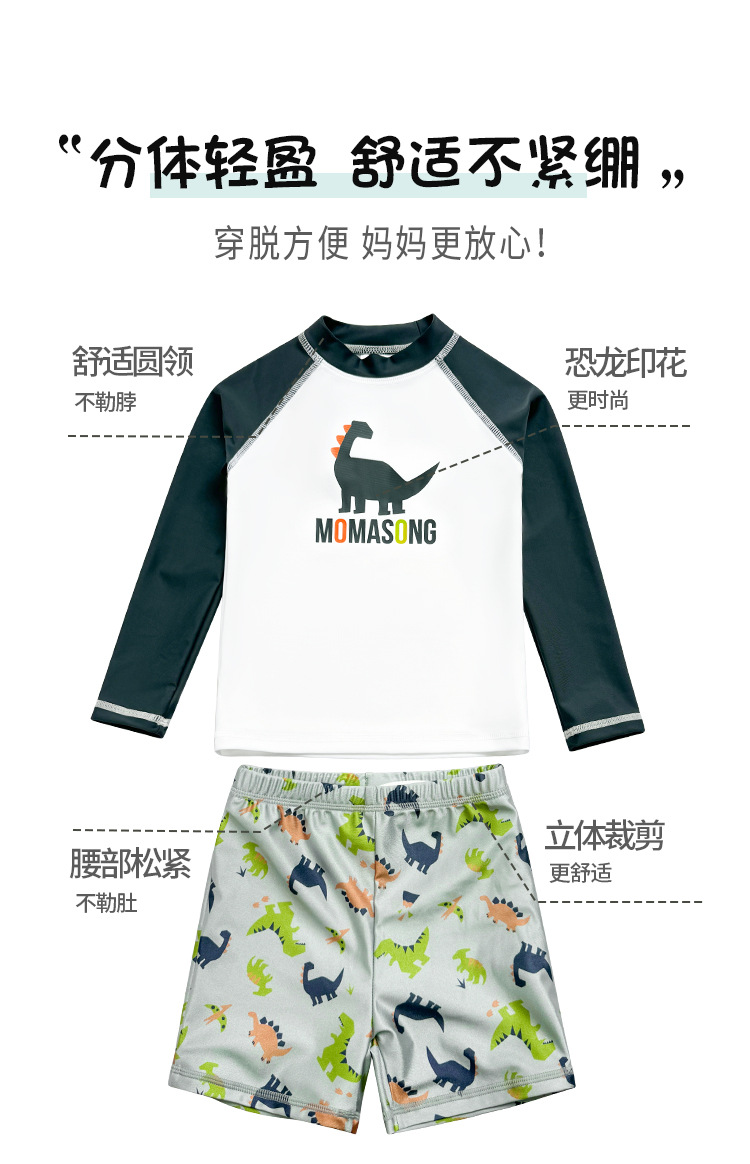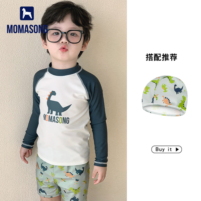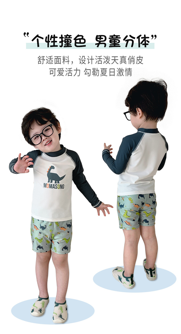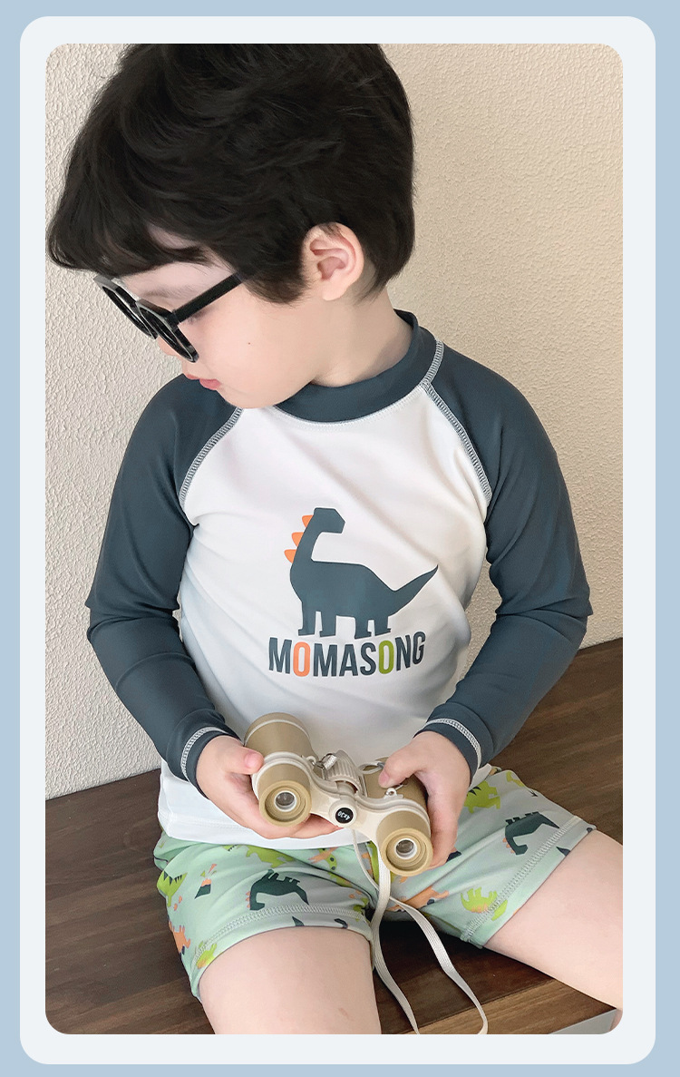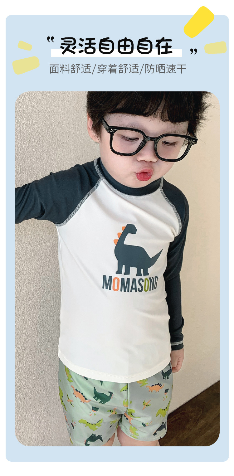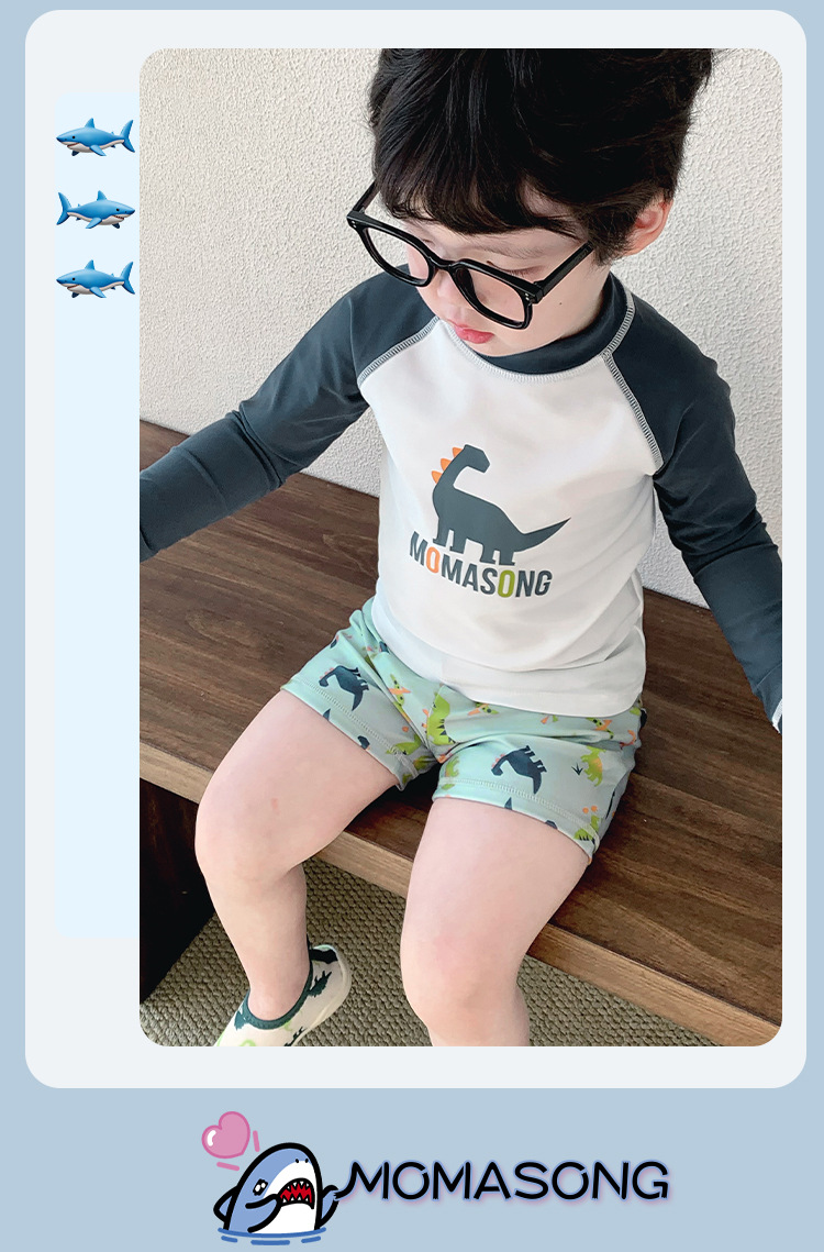 Momasong 어린이 수영복 2025 소년 스플릿 수영 공룡 해변 해변 자외선 차단제 속건성 수영복