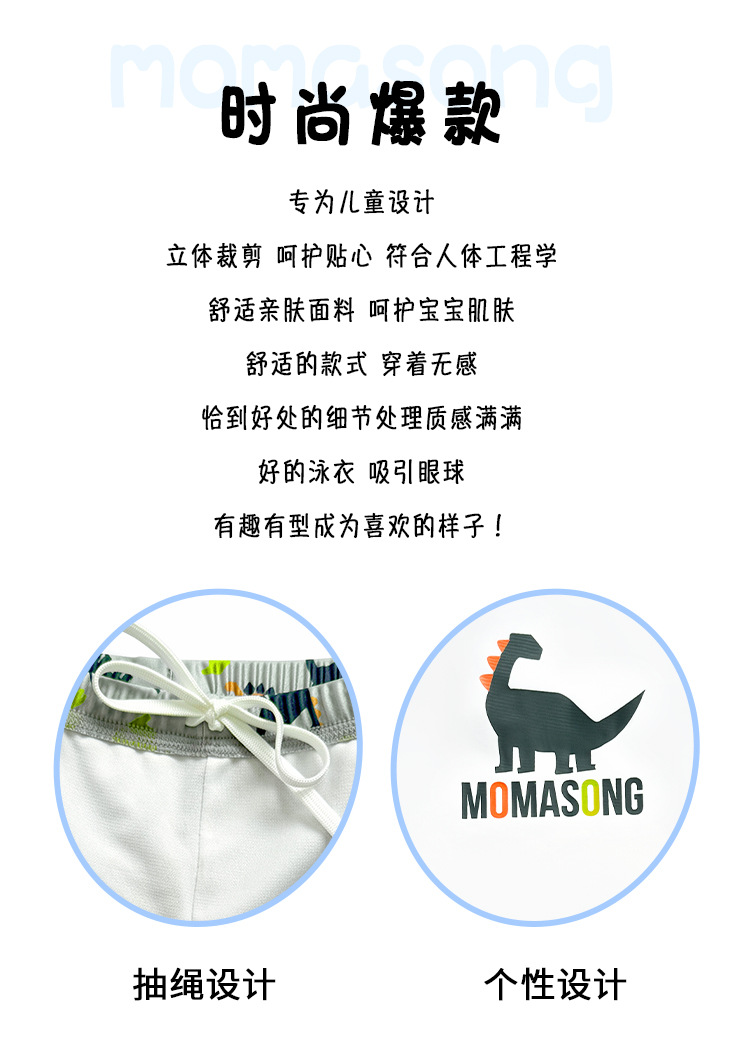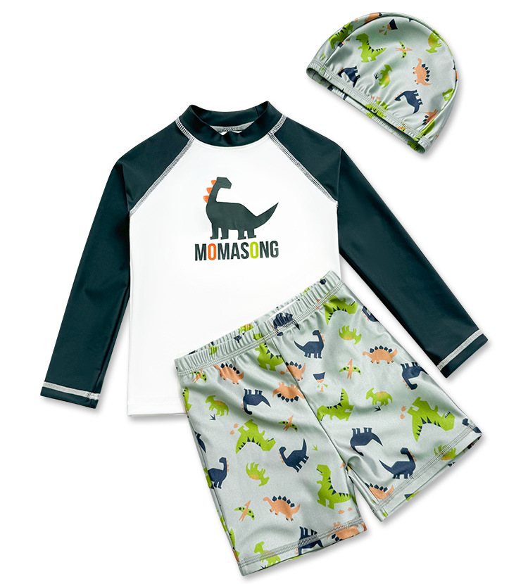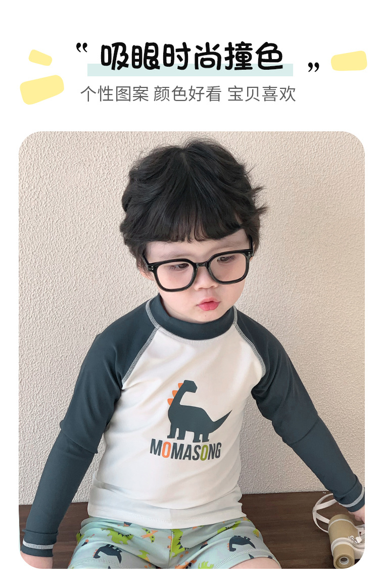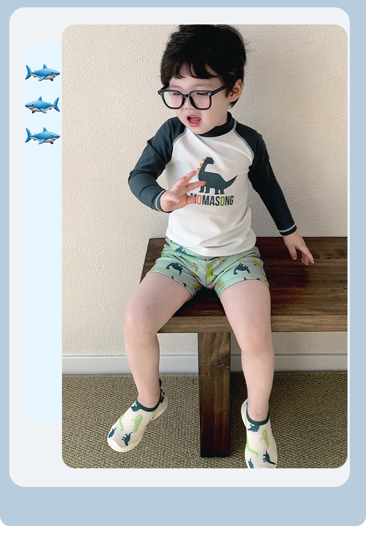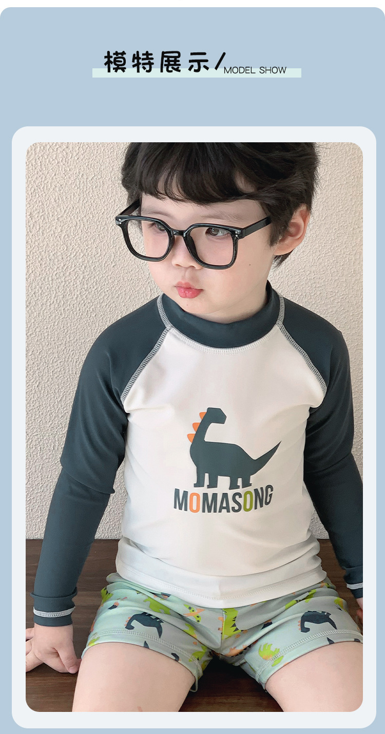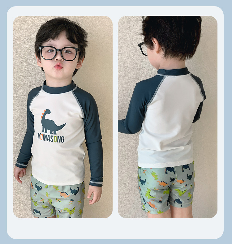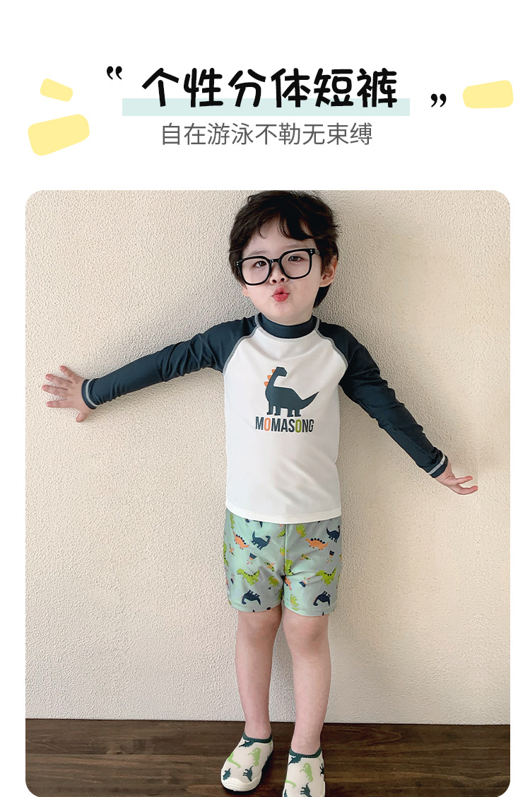 Momasong 어린이 수영복 2025 소년 스플릿 수영 공룡 해변 해변 자외선 차단제 속건성 수영복