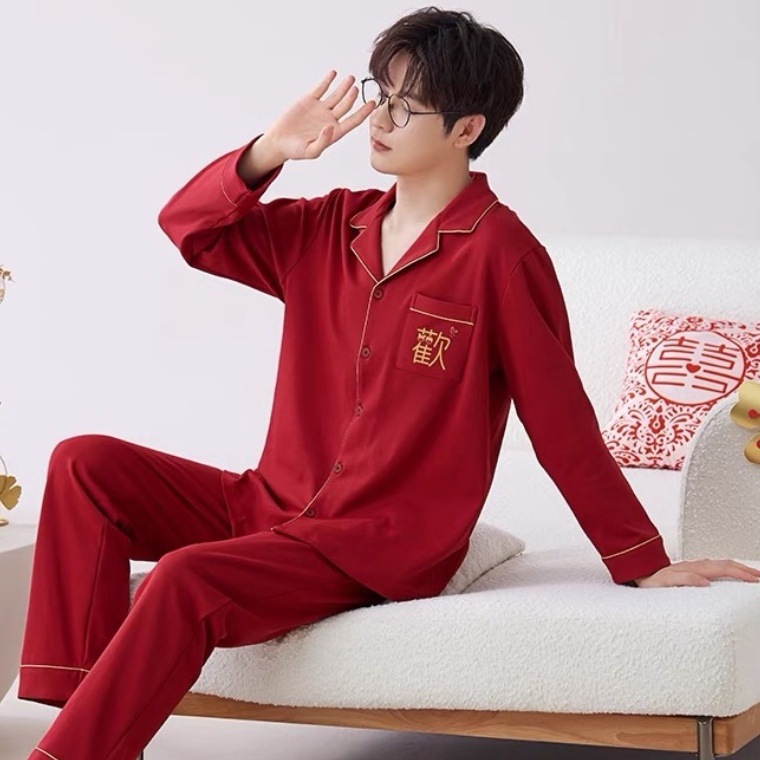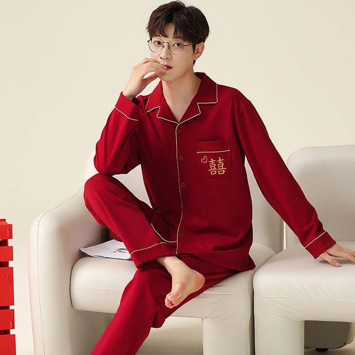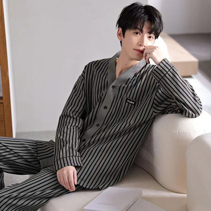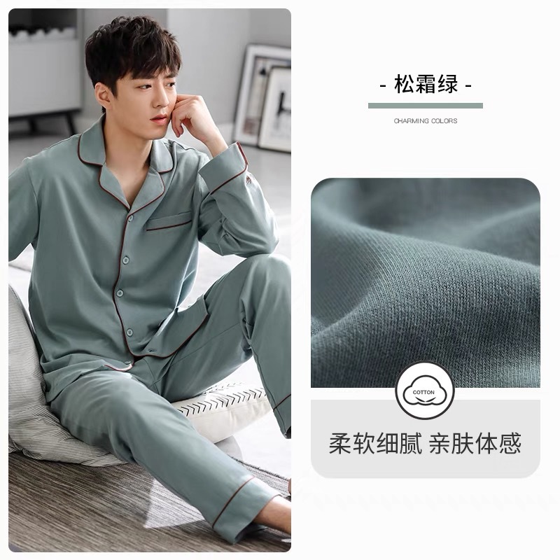 남성용 고급 고품질 면 잠옷, 봄, 가을 긴팔 남성 청소년 대형 캐주얼 가을, 겨울 홈웨어 세트스토어 가기