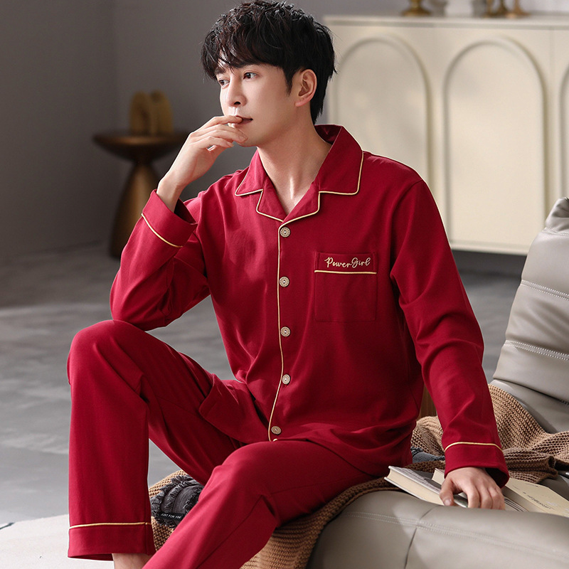 남성용 고급 고품질 면 잠옷, 봄, 가을 긴팔 남성 청소년 대형 캐주얼 가을, 겨울 홈웨어 세트