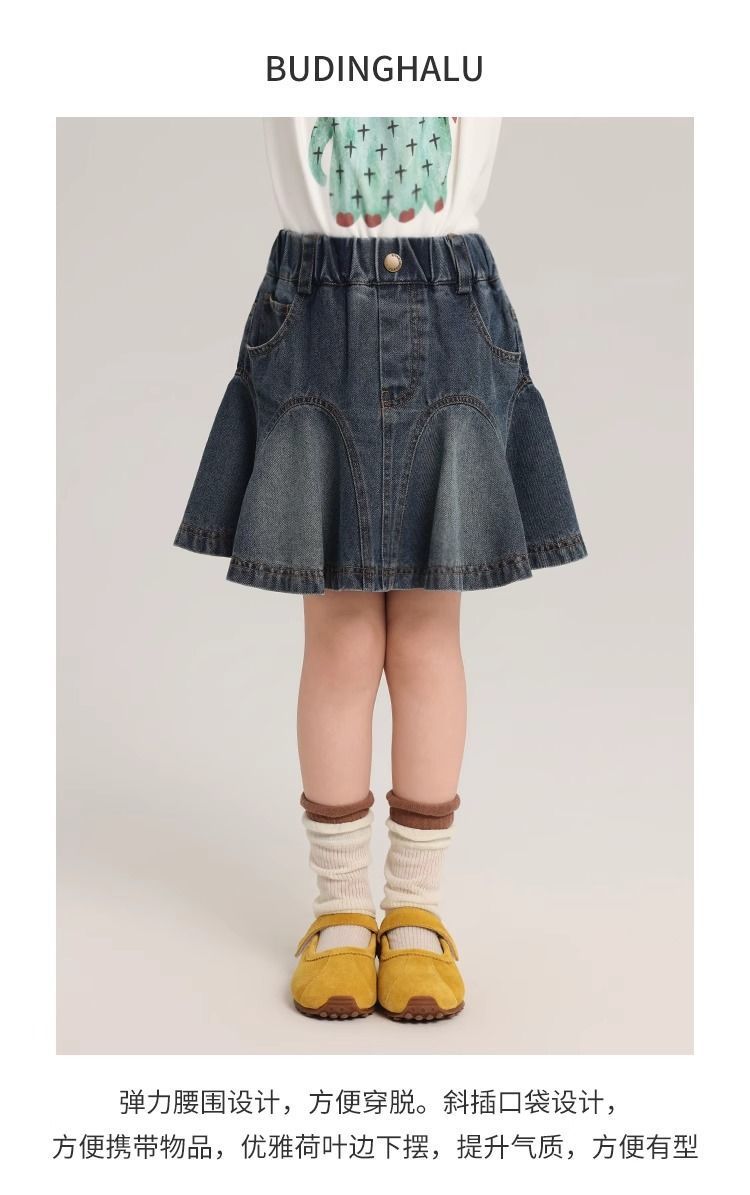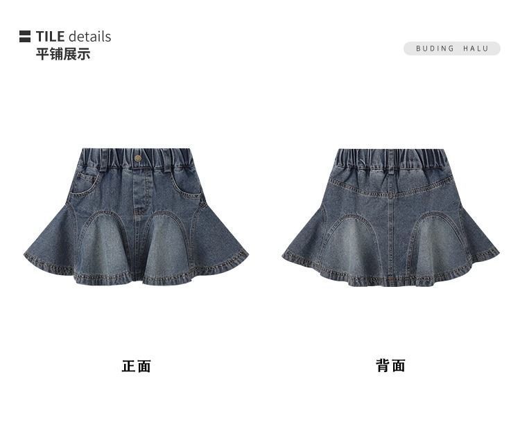 여아 여름 데님 스커트 새로운 아동용 다용도 스커트 여름 한국식 중소형 어린이 하프 길이 서양식 피쉬테일 스커트스토어 가기