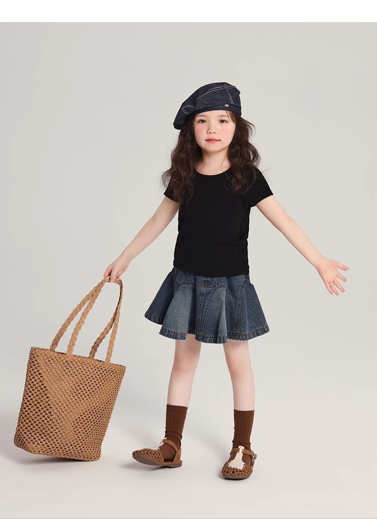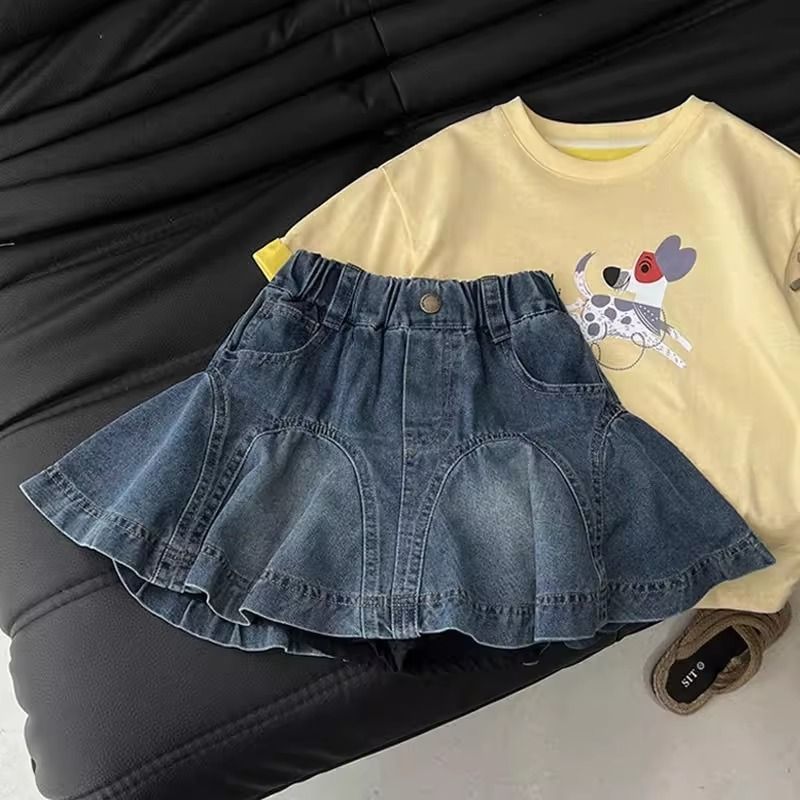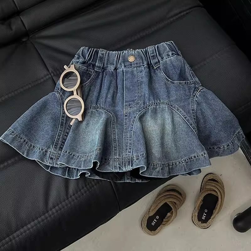 여아 여름 데님 스커트 새로운 아동용 다용도 스커트 여름 한국식 중소형 어린이 하프 길이 서양식 피쉬테일 스커트