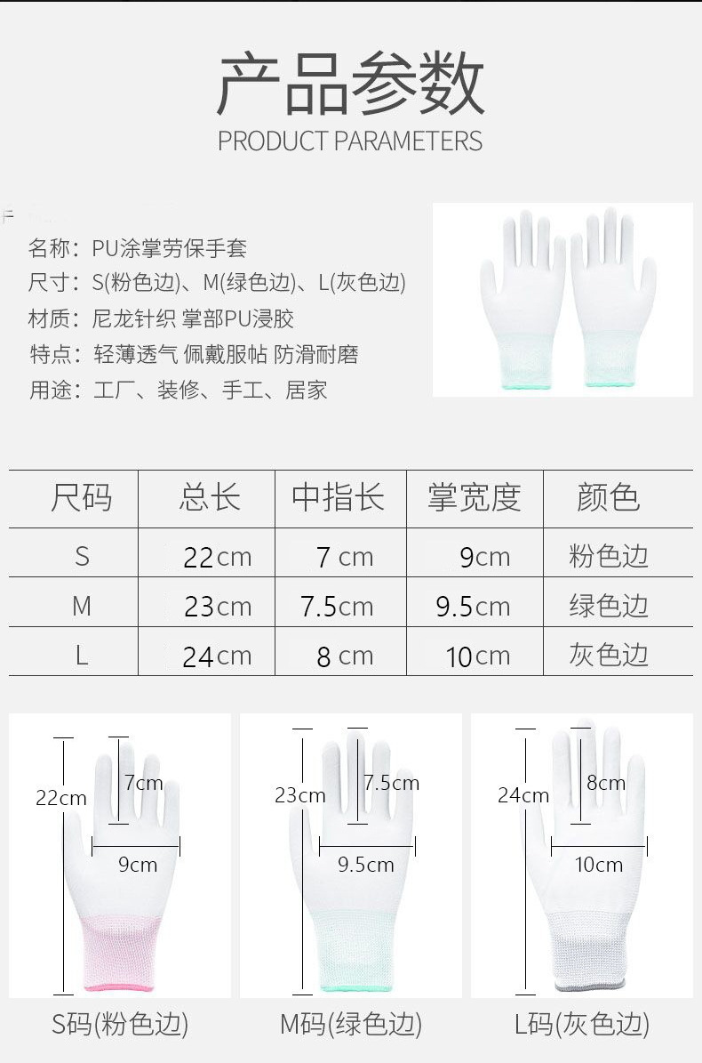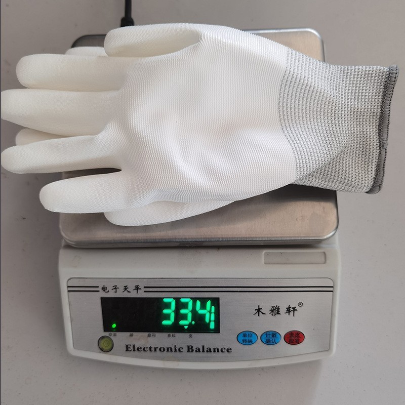 PU 코팅 손바닥 장갑 흰색 먼지가 없는 전자 탄소 섬유 정전기 방지 코팅 노동 보호 장갑 도매 손가락 코팅 장갑스토어 가기