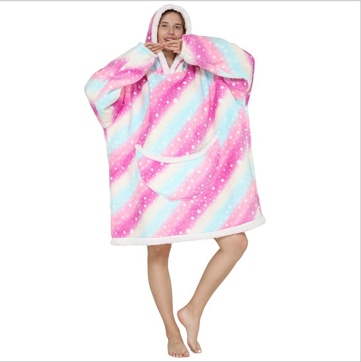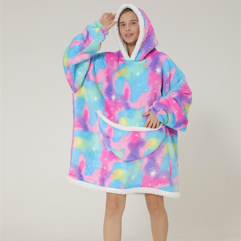 국경을 넘나드는 새로운 스타일의 프린트 레이지 슈트 풀오버 플란넬 후드 레이지 TV 담요 야외 기능성 의류 방한 의류