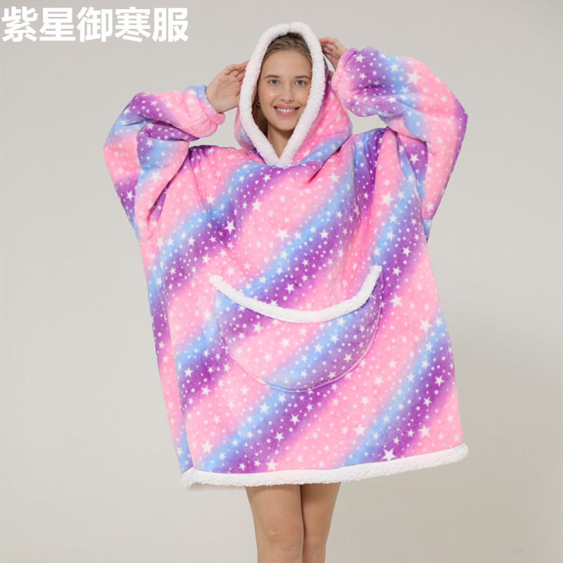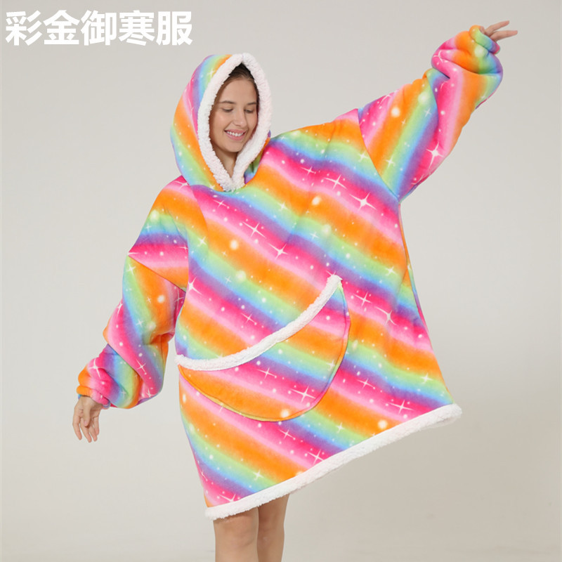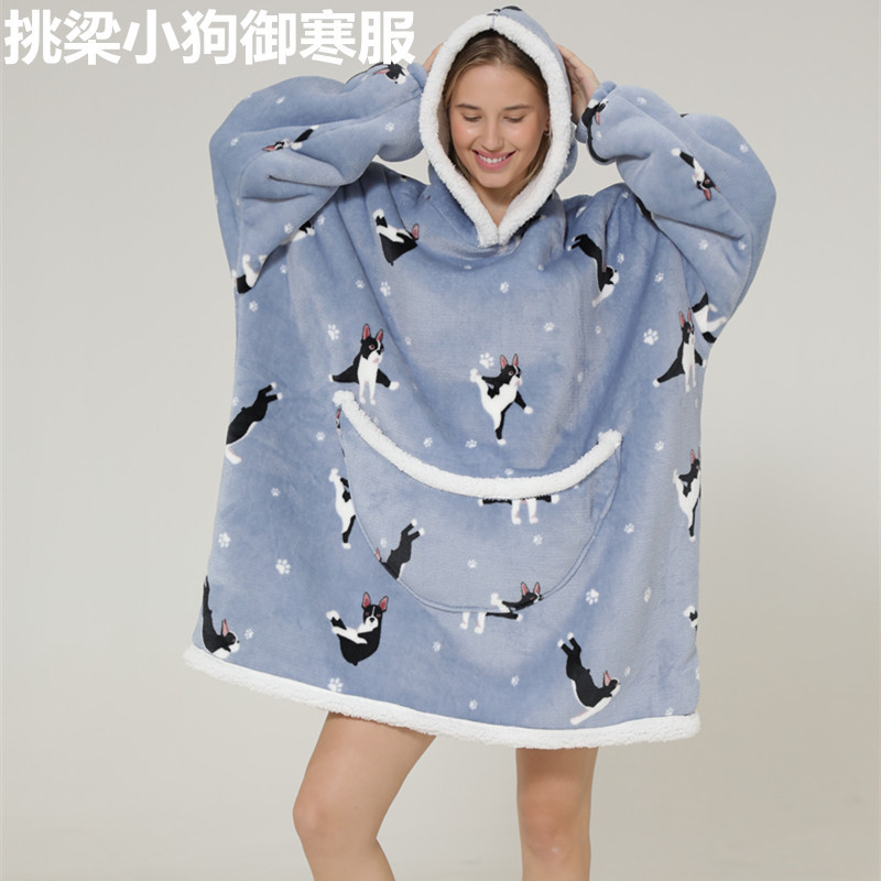 국경을 넘나드는 새로운 스타일의 프린트 레이지 슈트 풀오버 플란넬 후드 레이지 TV 담요 야외 기능성 의류 방한 의류스토어 가기