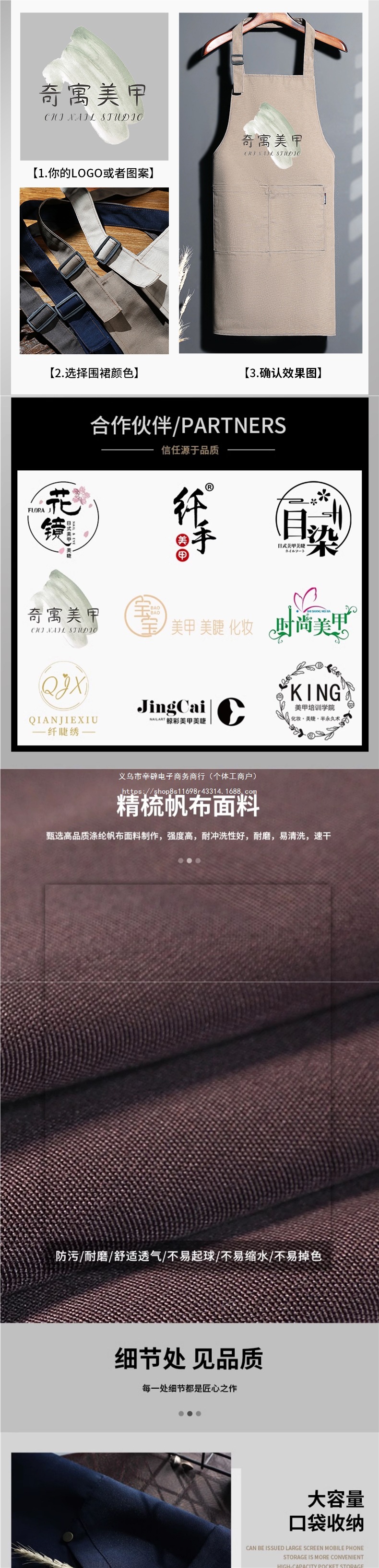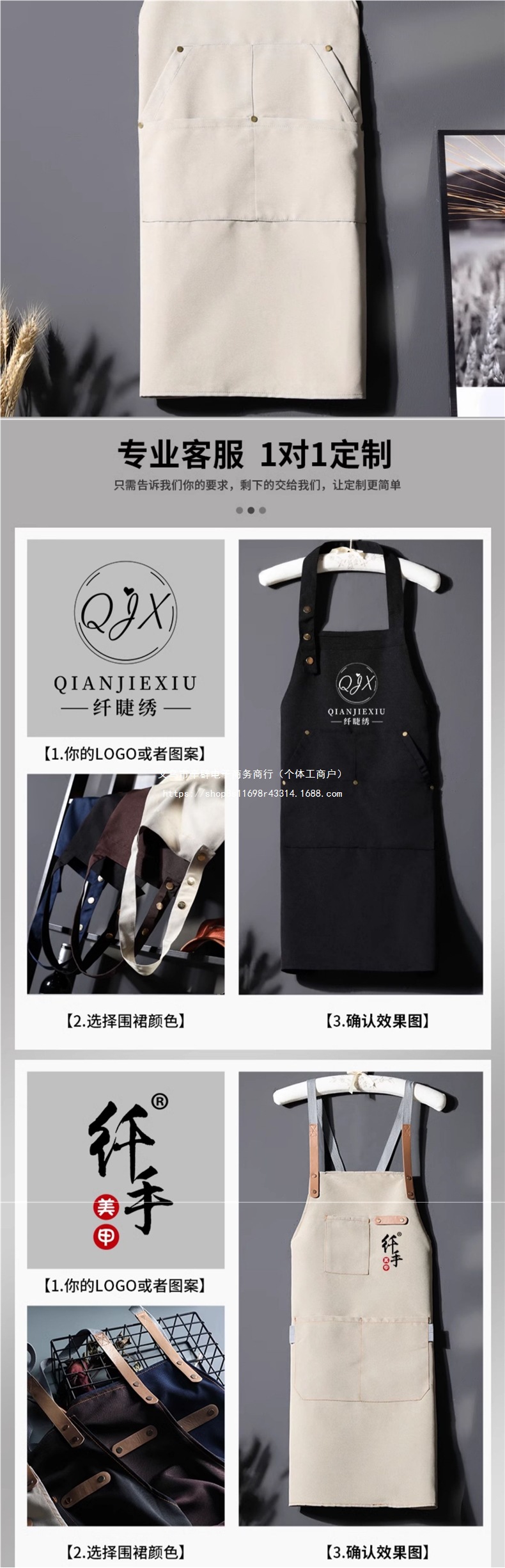 네일 아트 앞치마 맞춤형 붙지 않는 회색 인쇄 미용 패션 작업복 커피 숍 메이크업 아티스트 케이터링 앞치마스토어 가기