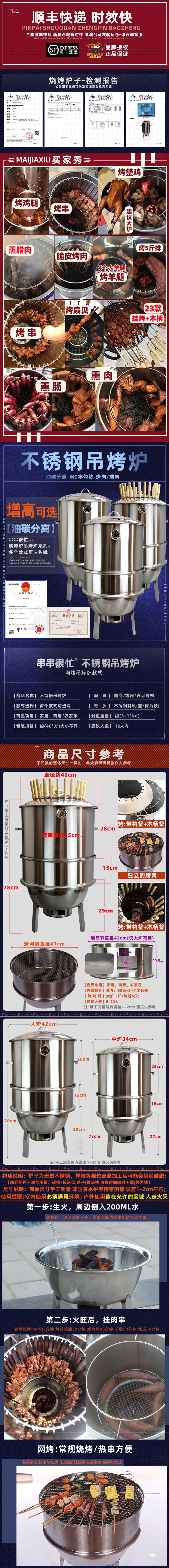 스테인레스 스틸 행잉 오븐, 무연 바베큐 오븐, 상업용 꼬치 삶은 바베큐 오븐, 닭고기, 오리, 거위, 양고기 다리 구이 오븐스토어 가기