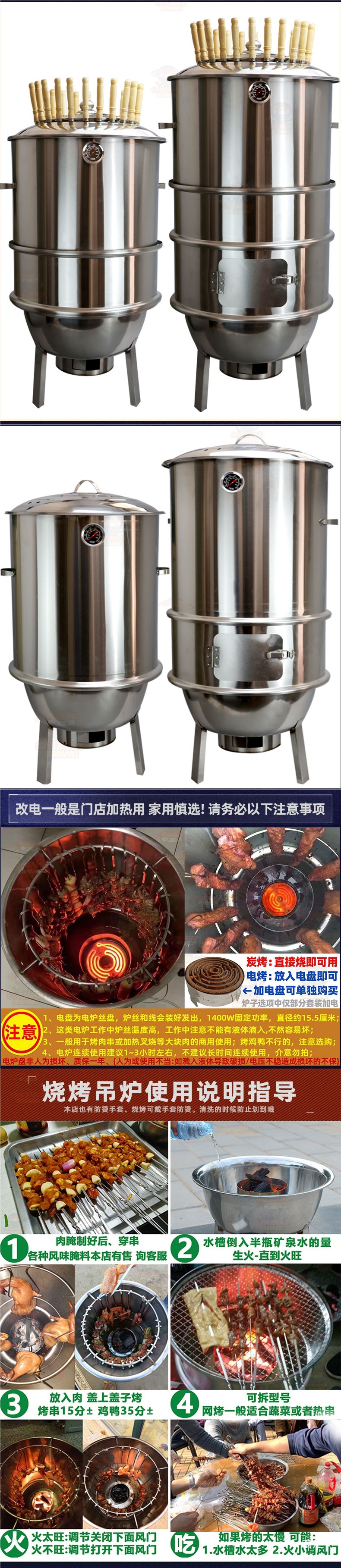 스테인레스 스틸 행잉 오븐, 무연 바베큐 오븐, 상업용 꼬치 삶은 바베큐 오븐, 닭고기, 오리, 거위, 양고기 다리 구이 오븐
