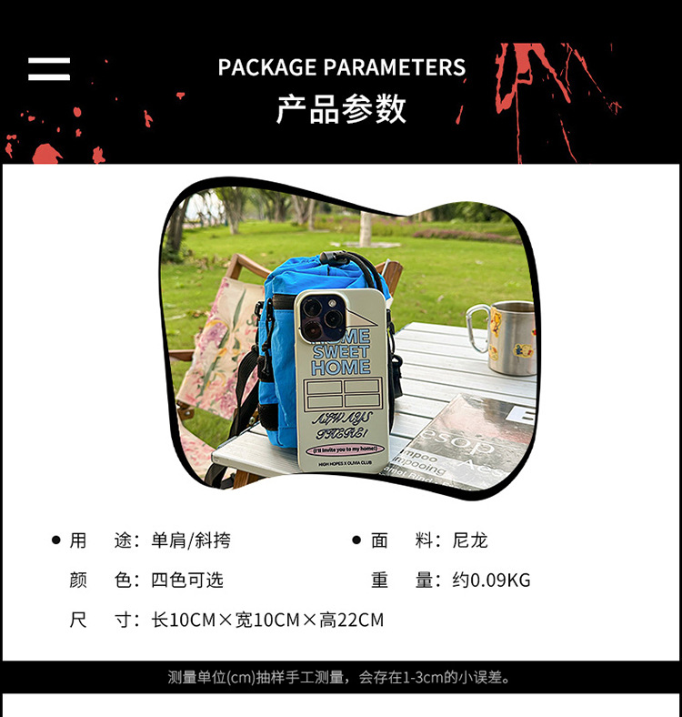 남녀공용 등산용 휴대폰가방, 발수, 심플한 외출용 물컵 숄더백, 경량 나일론 드로스트링 캐주얼 크로스백스토어 가기