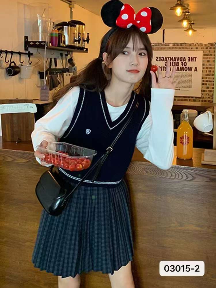 여성용 니트 조끼 2023 봄, 가을 새로운 스타일 대학 스타일 일본 스타일 V 넥 조끼 복고풍 조끼 민소매 탑스토어 가기
