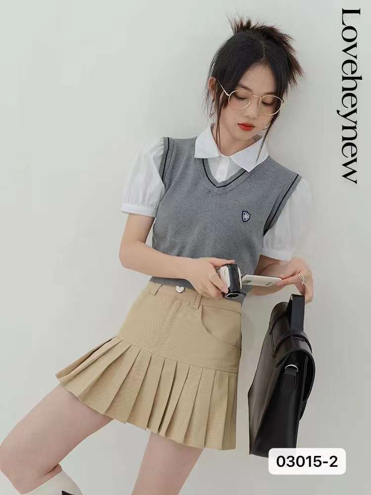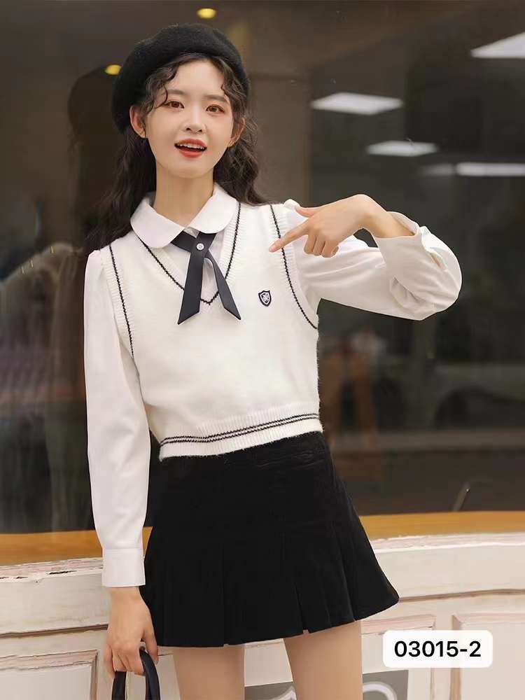 여성용 니트 조끼 2023 봄, 가을 새로운 스타일 대학 스타일 일본 스타일 V 넥 조끼 복고풍 조끼 민소매 탑