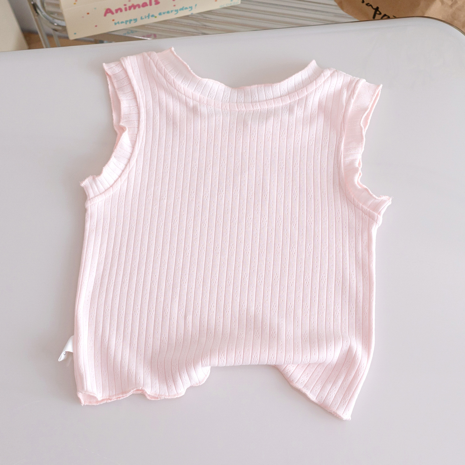 아기 소녀 달콤한 조끼 25 여름 새로운 스타일 부드럽고 얇은 민소매 티셔츠 소녀 캔디 컬러 유행 탑 3