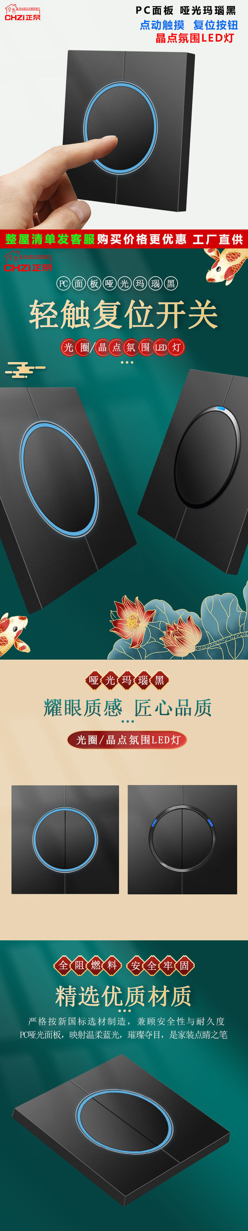 터치 스위치 터치 포인트 푸시 스위치 소켓 LED 조명 매트 86 유형 숨겨진 벽 단일 개방형 5홀 세트스토어 가기