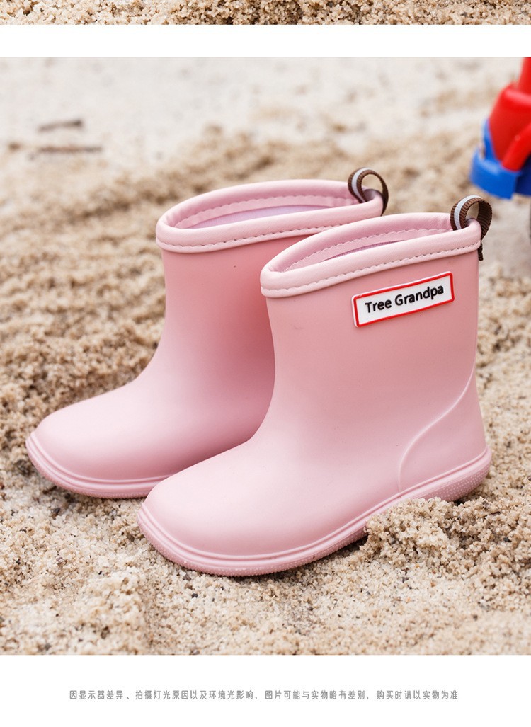 미끄럼 방지 부드러운 밑창과 가벼운 어린이용 남녀 아기 중간 튜브 장화 유아용 워터슈즈를 갖춘 간단한 어린이 장화