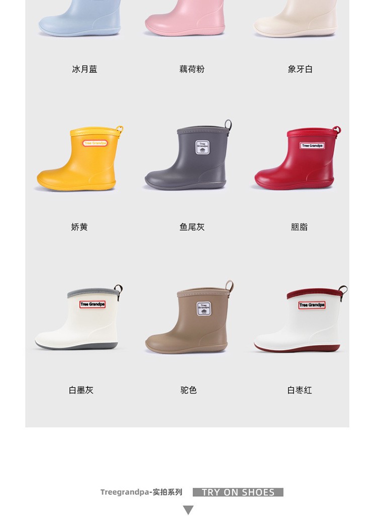 미끄럼 방지 부드러운 밑창과 가벼운 어린이용 남녀 아기 중간 튜브 장화 유아용 워터슈즈를 갖춘 간단한 어린이 장화스토어 가기