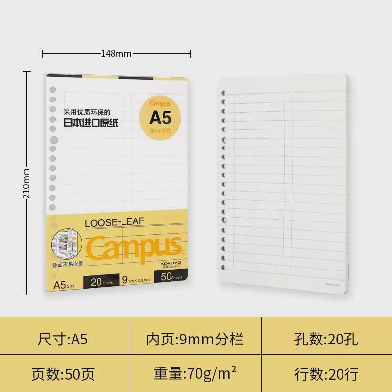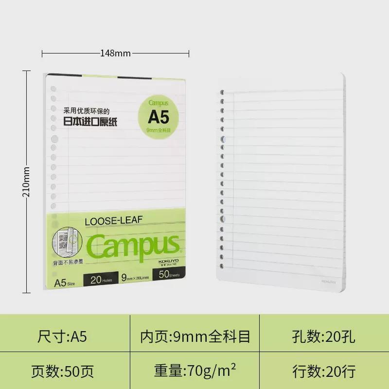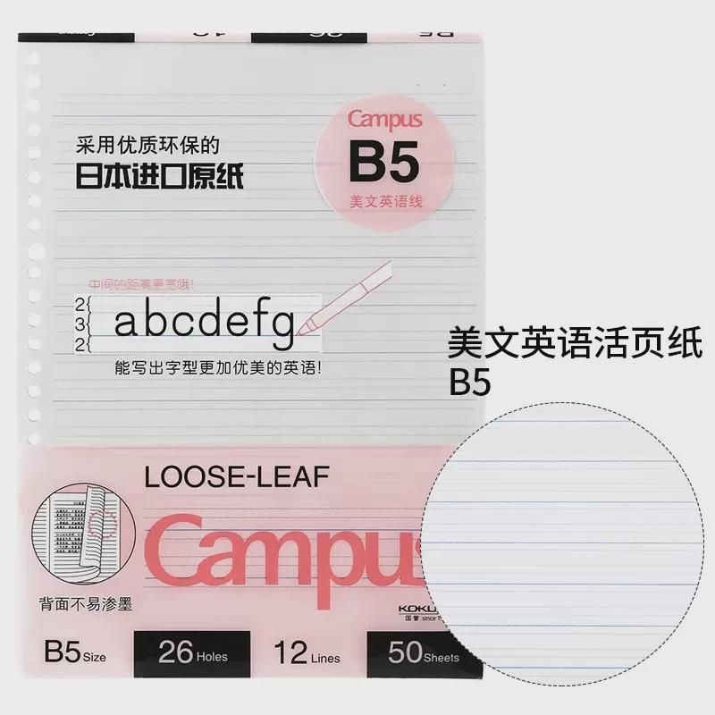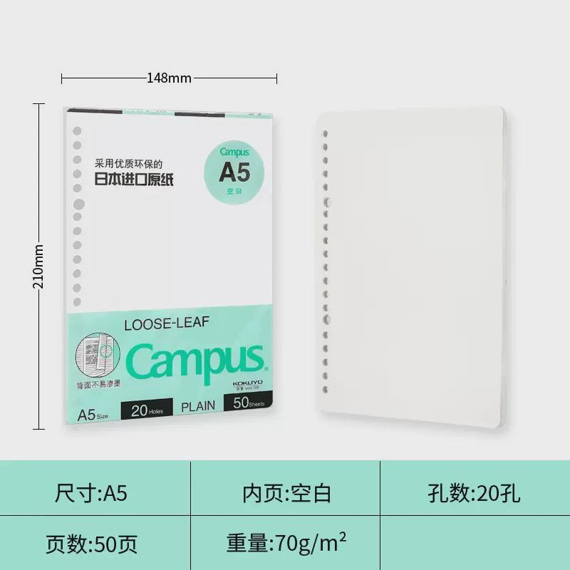 루스 리프 캠퍼스 바인더 종이 그리드 빈 루스 리프 교체 코어 b5a5