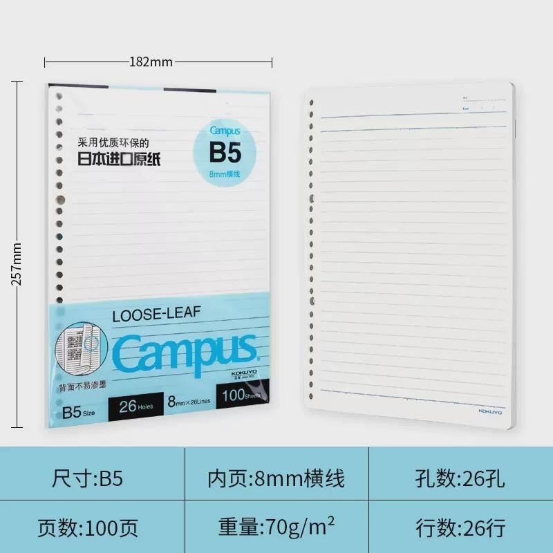루스 리프 캠퍼스 바인더 종이 그리드 빈 루스 리프 교체 코어 b5a5스토어 가기