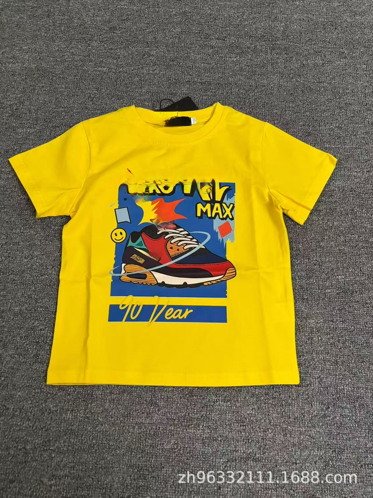 아동 의류 순면 반팔 티셔츠 1-4 세 여름 스타일 만화 소년과 소녀 탑 아동 의류스토어 가기