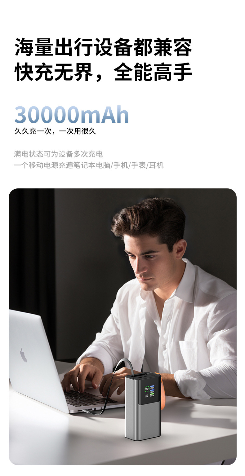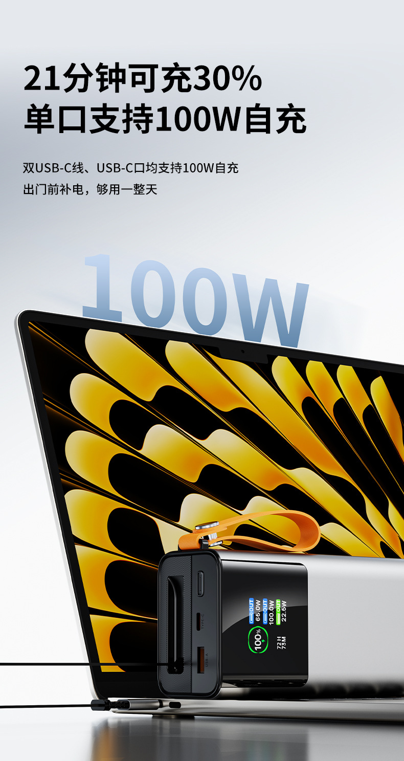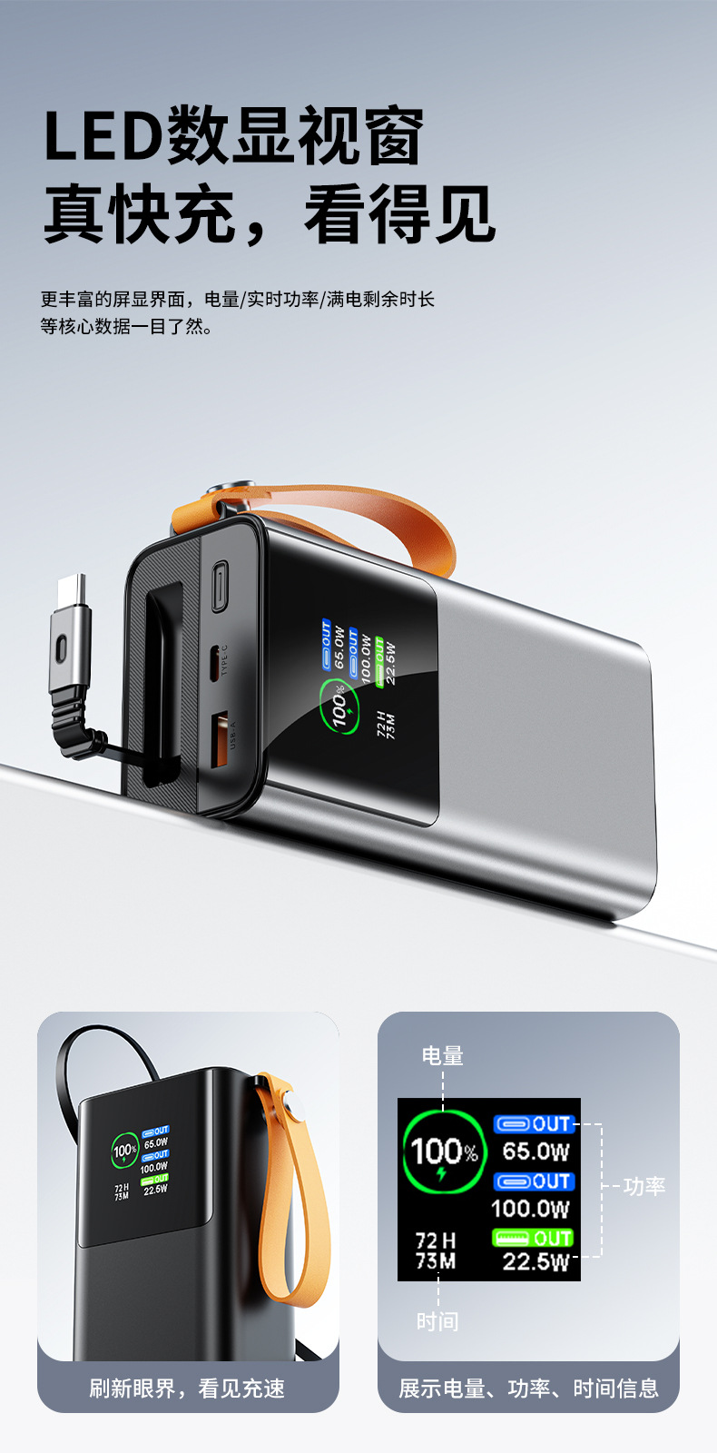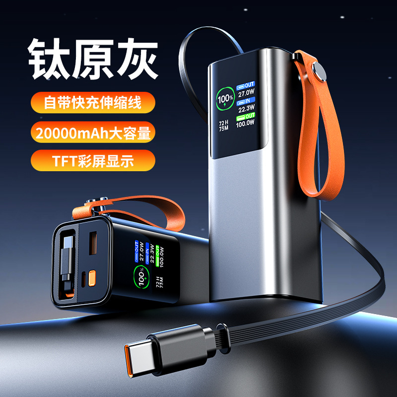 100W 노트북 보조배터리 TFT 접이식 케이블 2만mAh 모바일 파워뱅크 내장 케이블 포함 창의적 디자인
