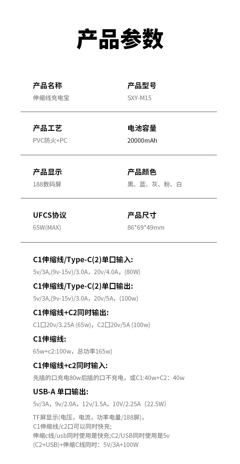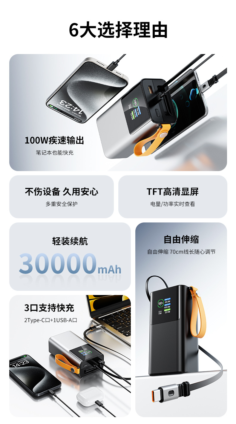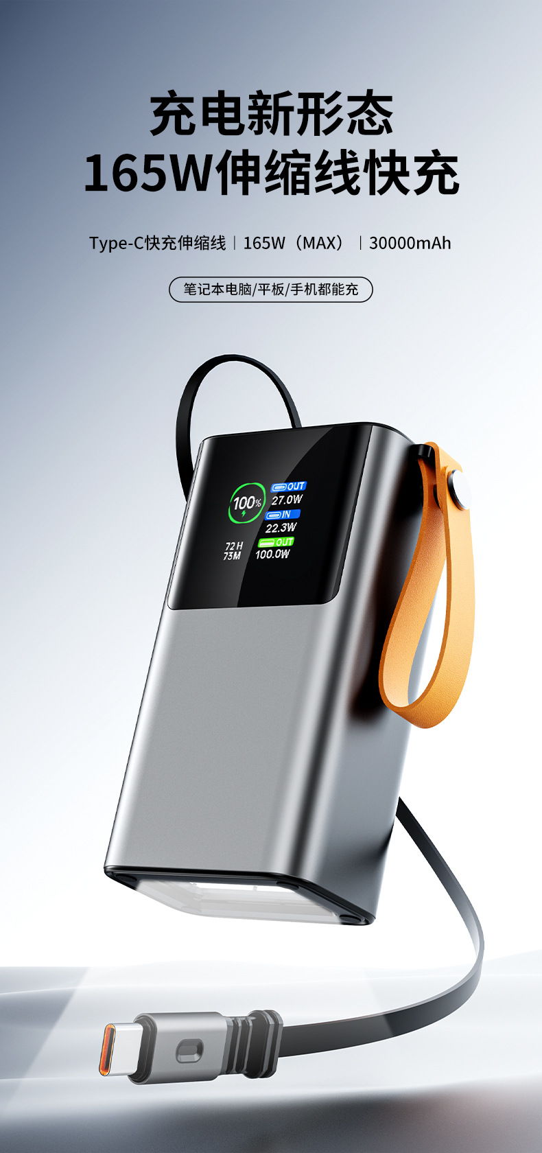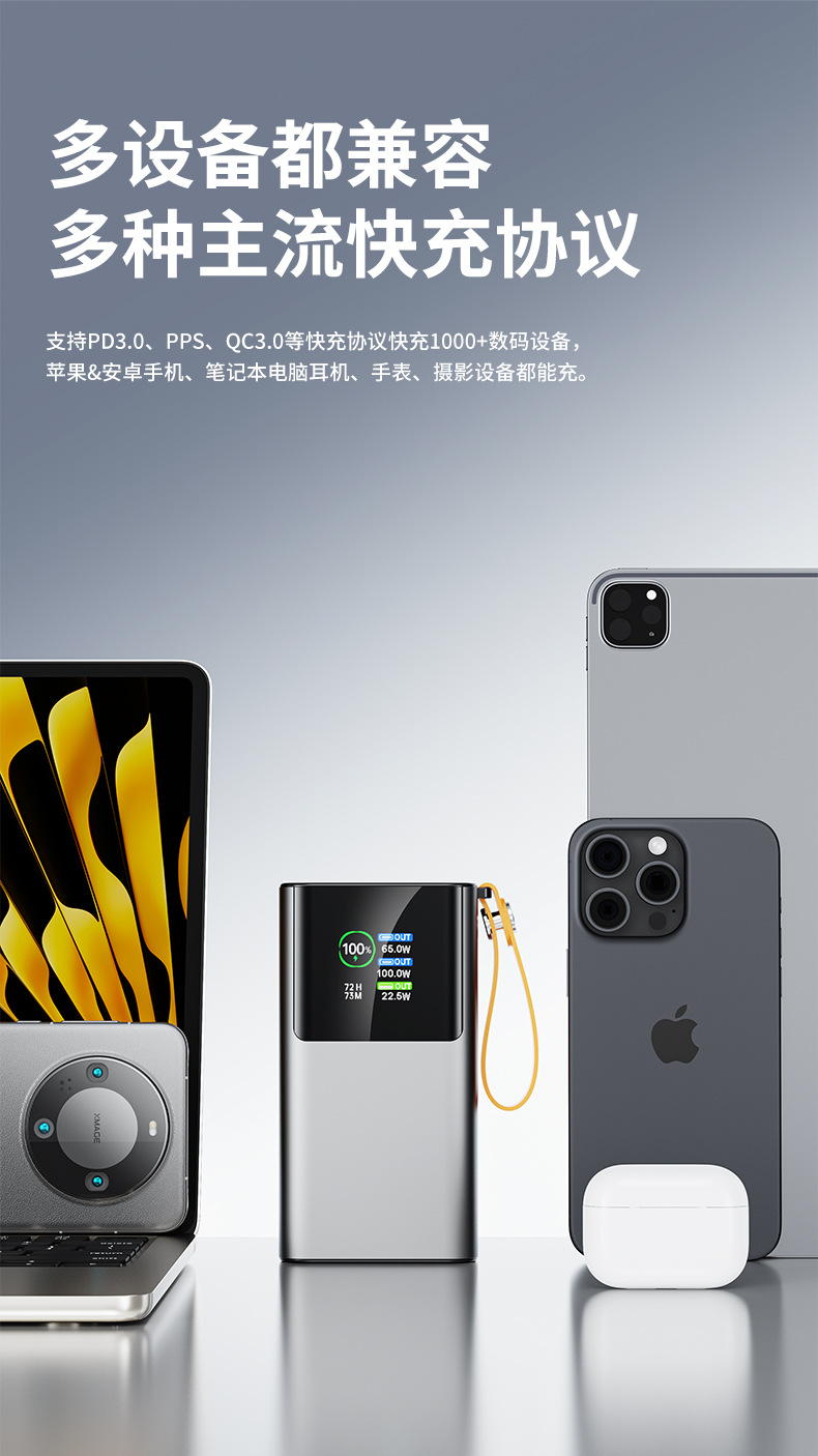 100W 노트북 보조배터리 TFT 접이식 케이블 2만mAh 모바일 파워뱅크 내장 케이블 포함 창의적 디자인
