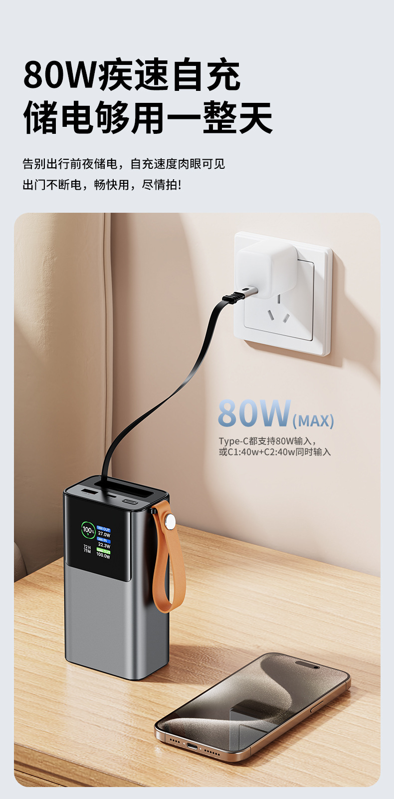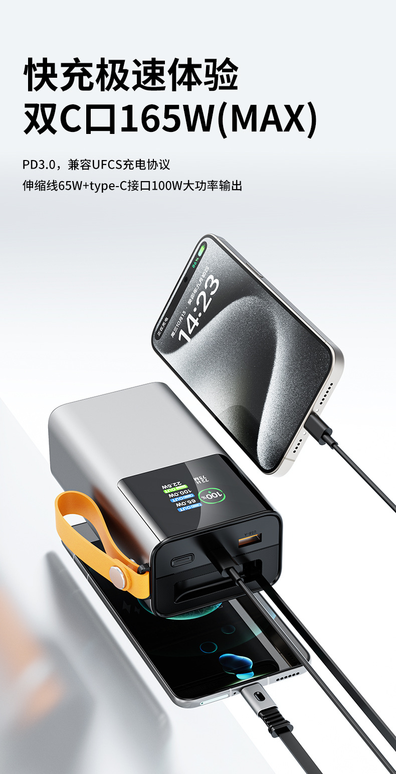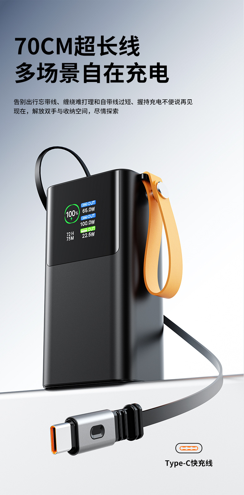 100W 노트북 보조배터리 TFT 접이식 케이블 2만mAh 모바일 파워뱅크 내장 케이블 포함 창의적 디자인스토어 가기