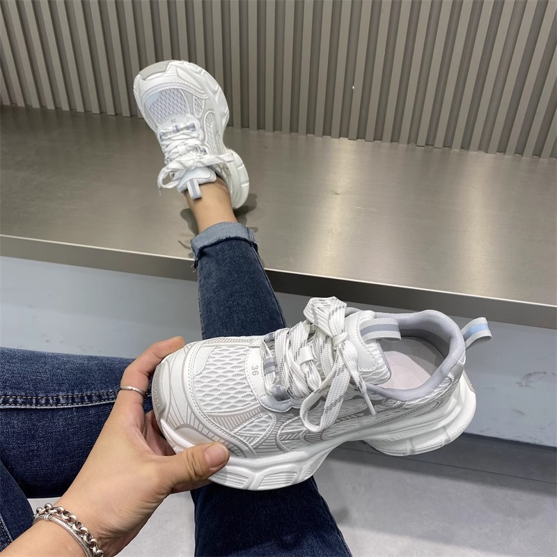 메쉬 통기성 패션 캐주얼 스포츠 신발 여성 두꺼운 밑창 경량 운동화 2025 봄 새로운 높이 증가 아빠 신발스토어 가기