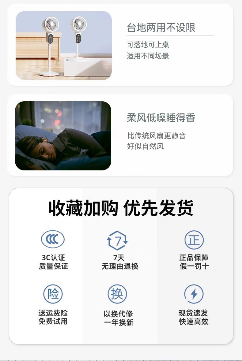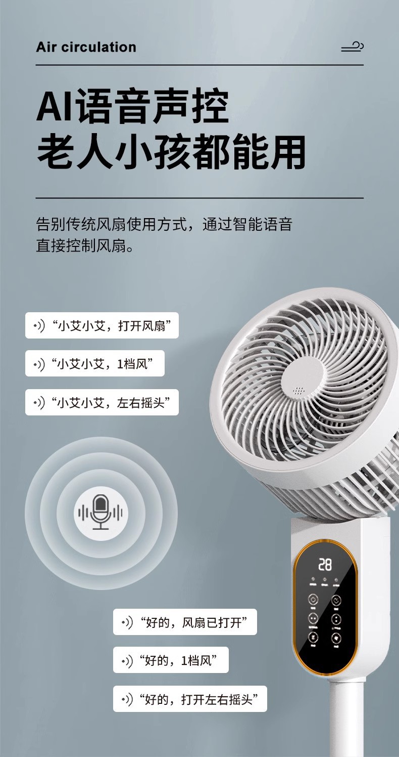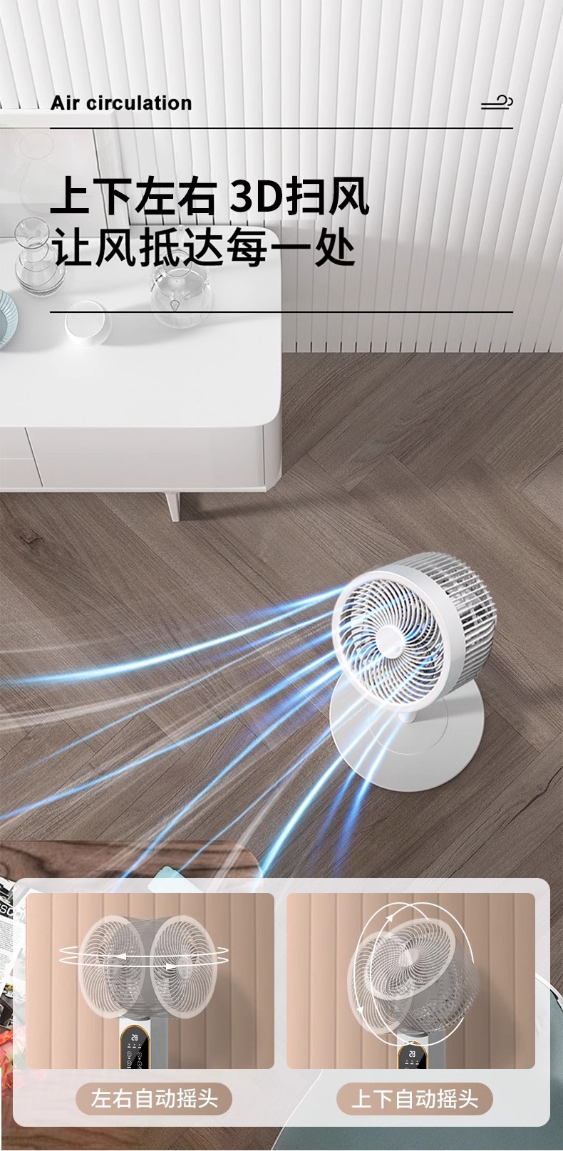 2025 새로운 공기 순환 팬 가정용 소형 지능형 초 저소음 무음 바닥 팬 데스크탑 이중 용도 전동 팬