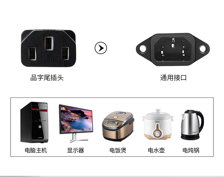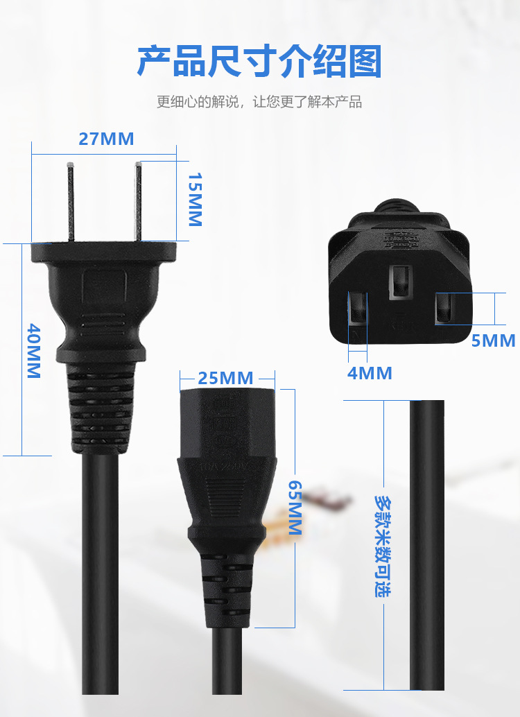 일본 표준 일본식 2핀 전원 코드, 구멍이 있는 2개의 플랫 컴퓨터 호스트, 대만 미국 표준 플러그 코드스토어 가기