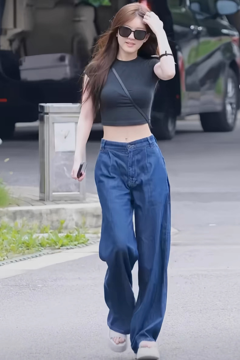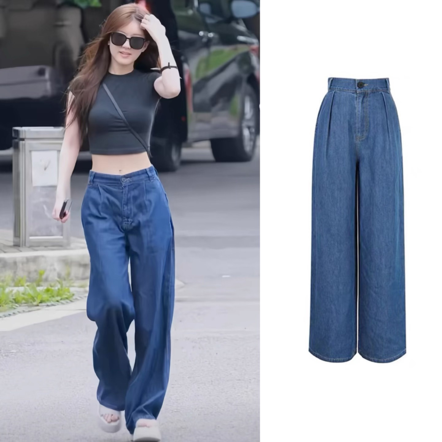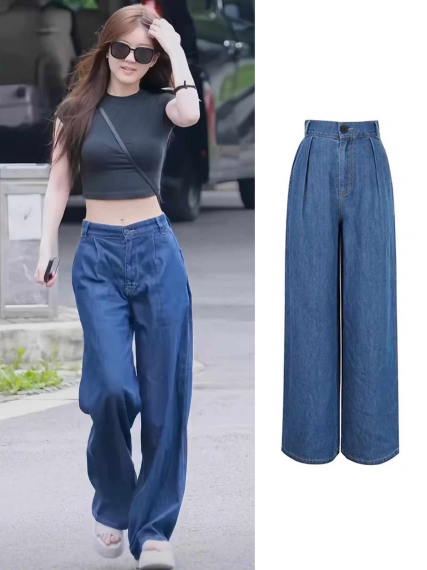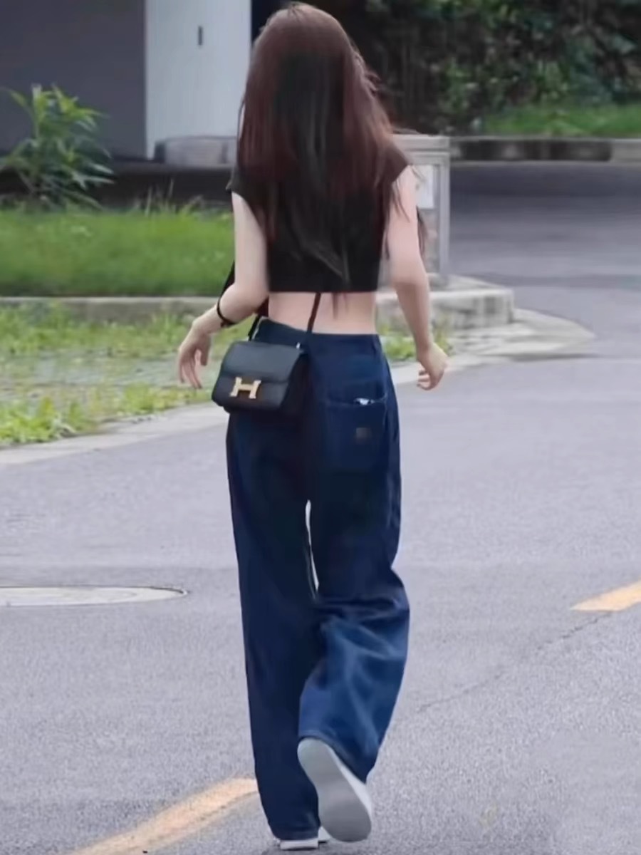 [재고 있음] 조루시와 같은 스타일의 블루 로우 웨이스트 데님 팬츠 여성 캐주얼 스트레이트 와이드 팬츠 와이드 레그 슬림핏스토어 가기