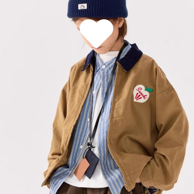 아동 가을 의류 2025 봄, 가을 새로운 스타일 소년 중대형 아동 작업복 재킷 라펠 셔츠 스타일 복고풍 프린트 재킷스토어 가기