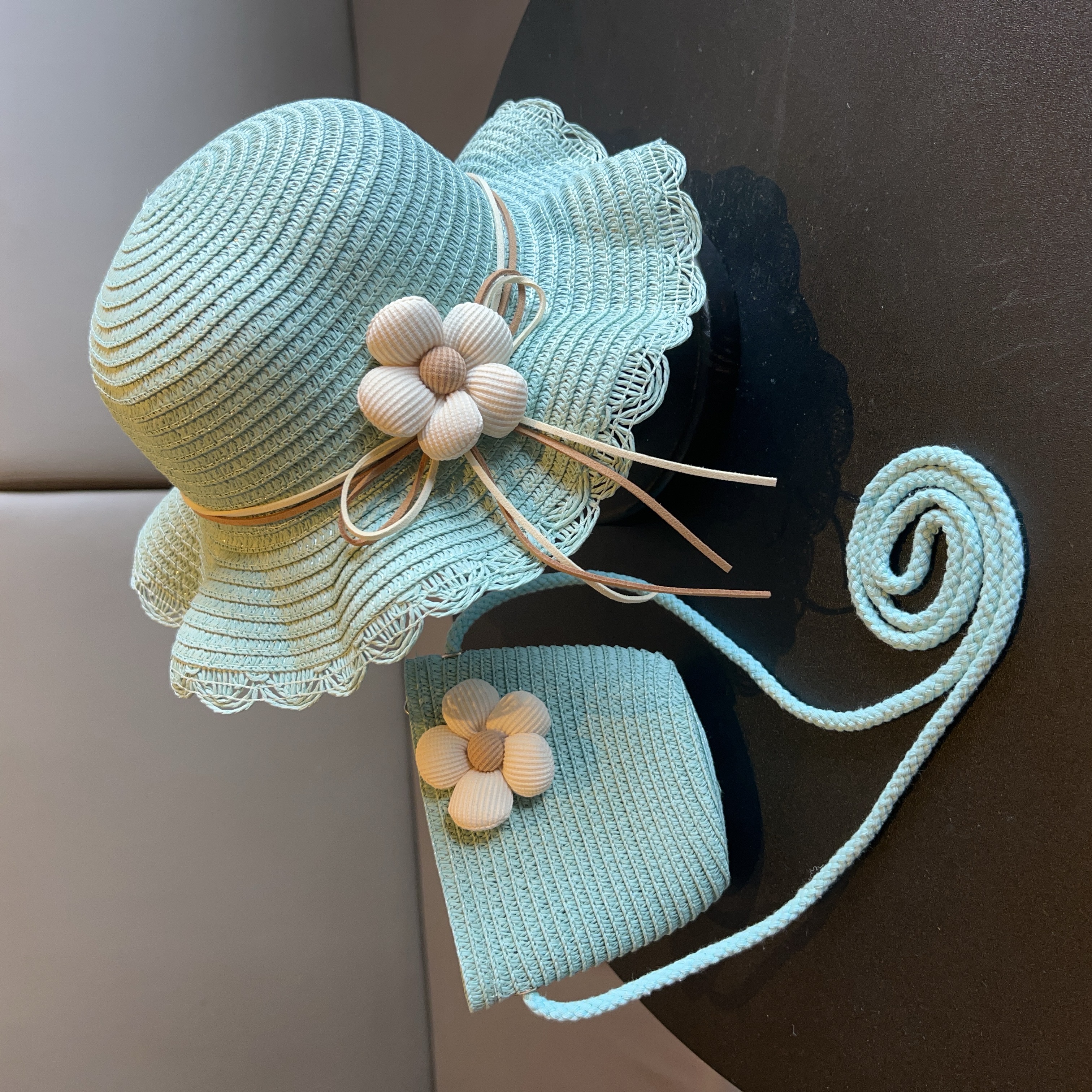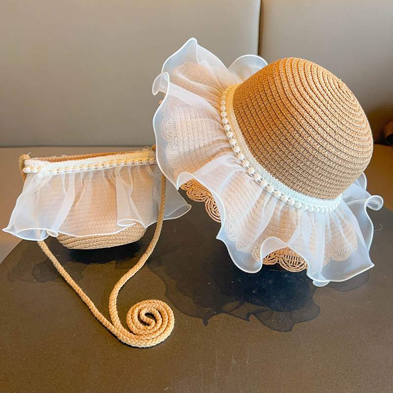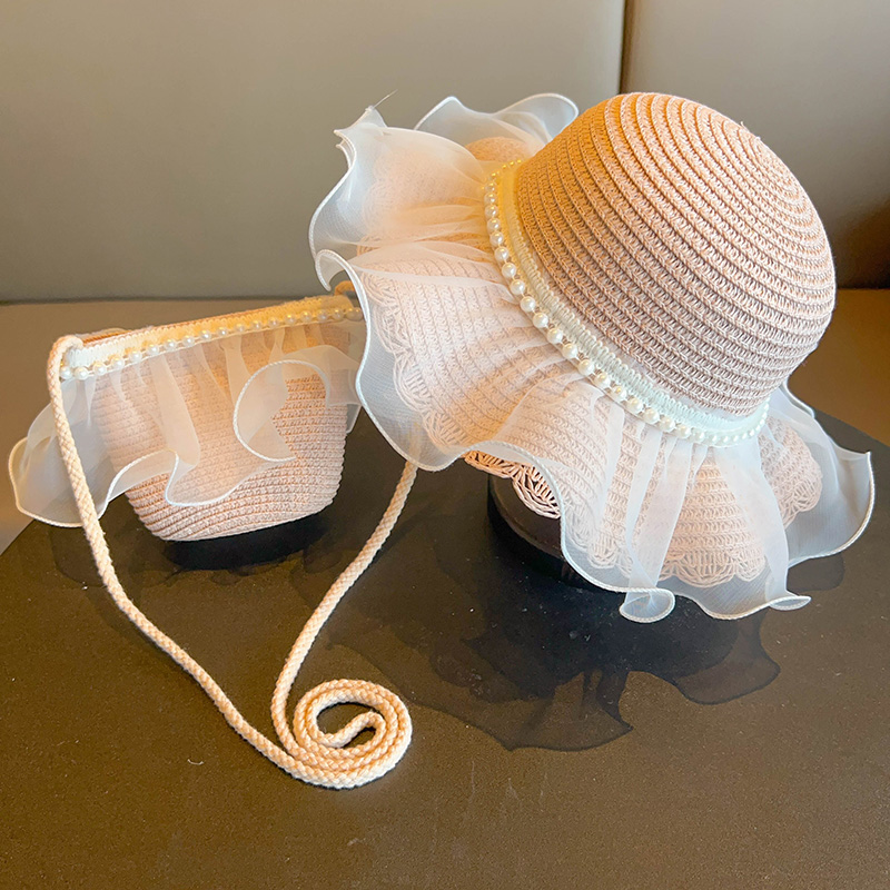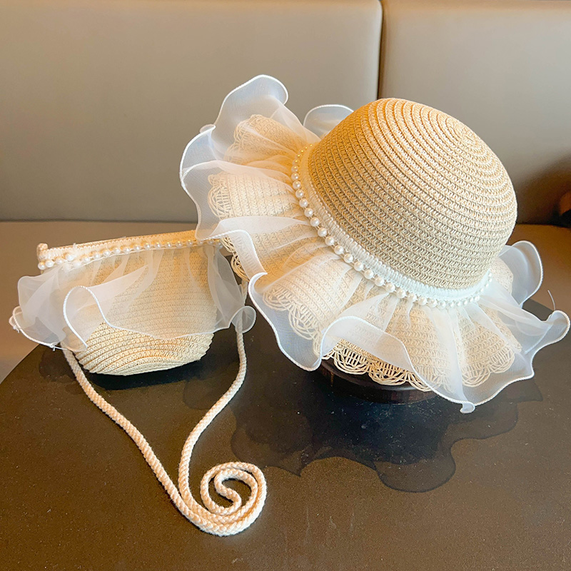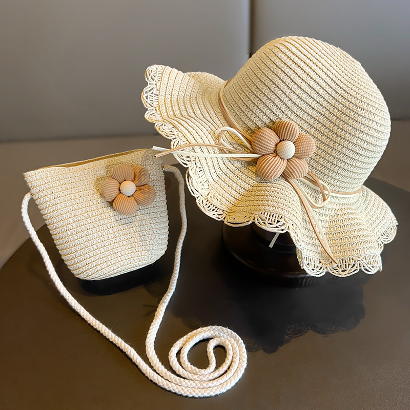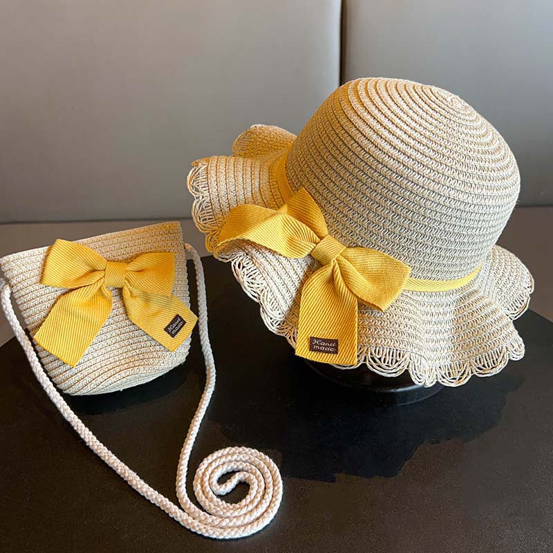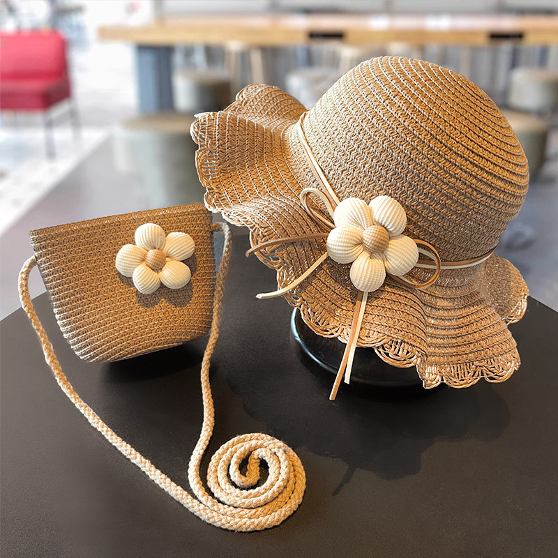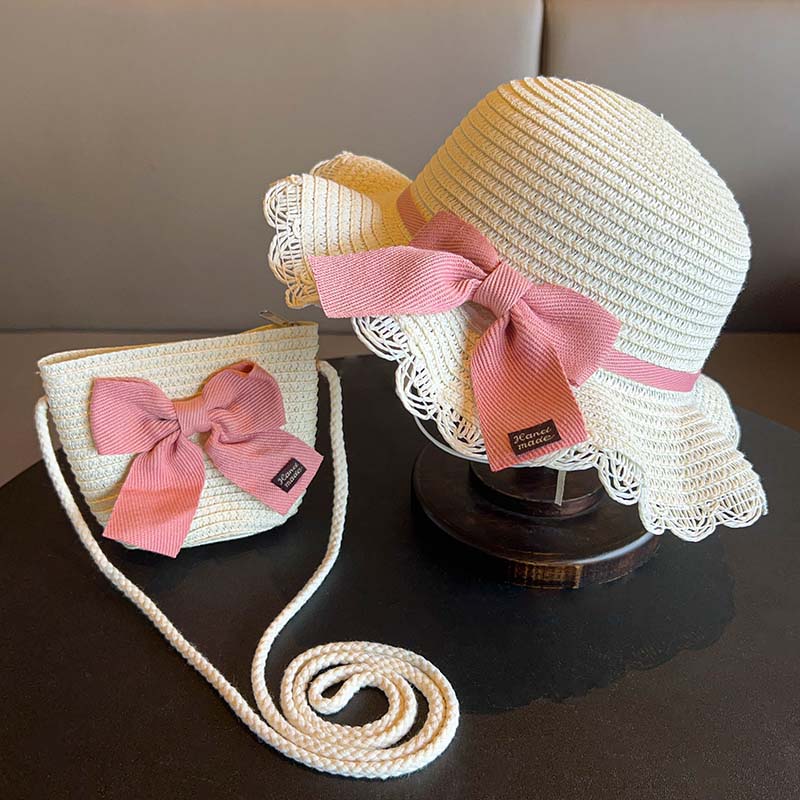 어린이 짠 가방 모자 여름 어린 소녀 태양 모자 밀짚 모자 크로스 바디 가방 세트 배낭 동전 지갑