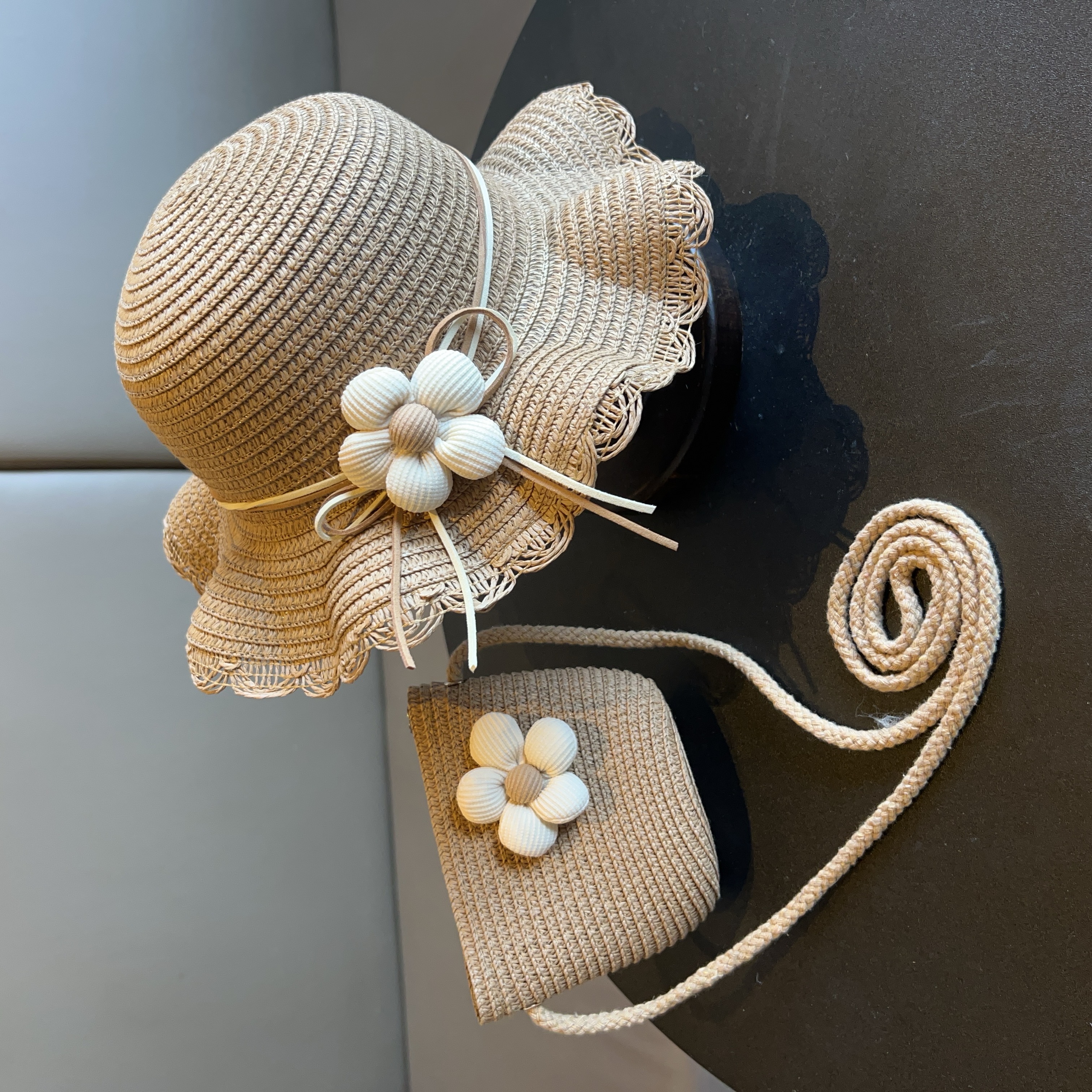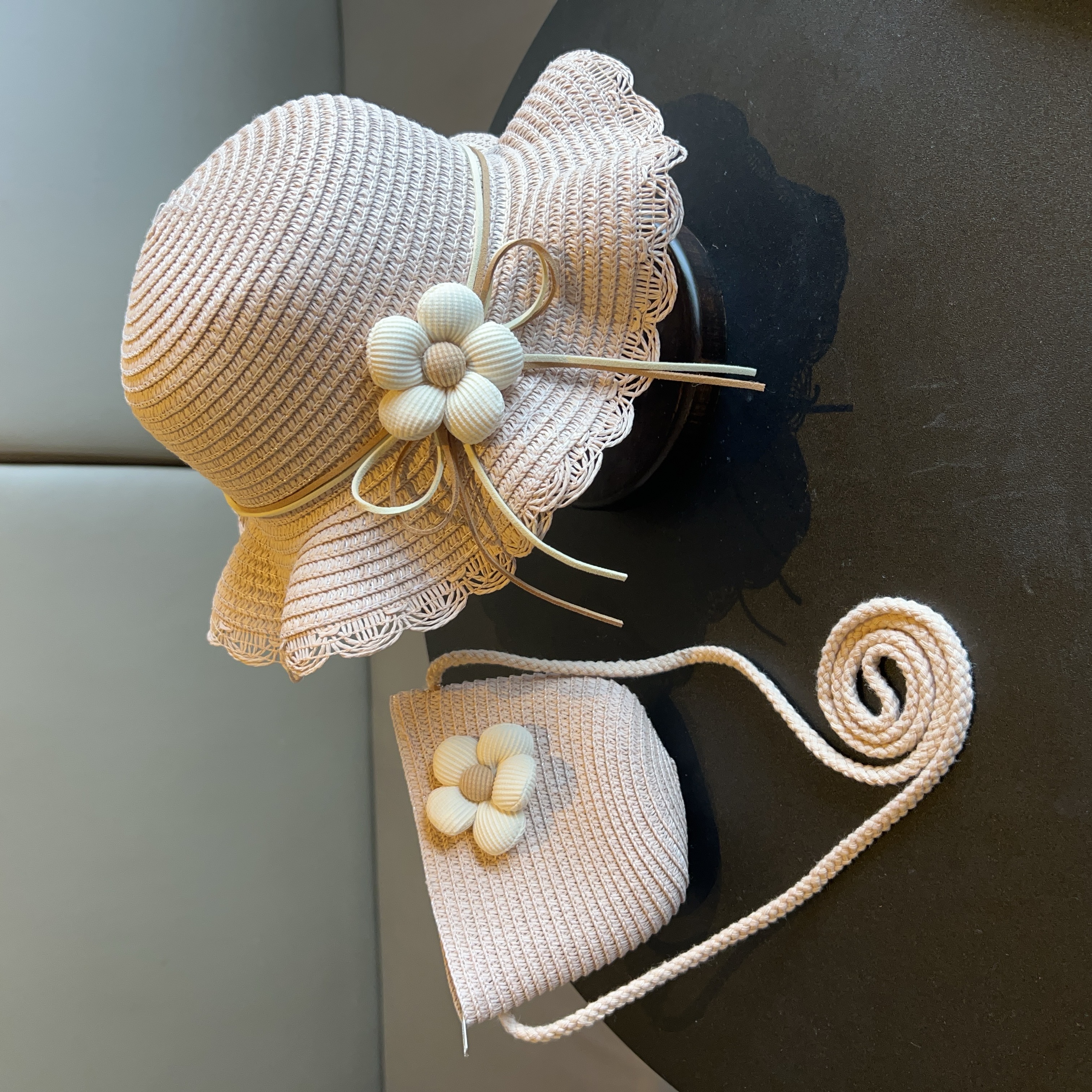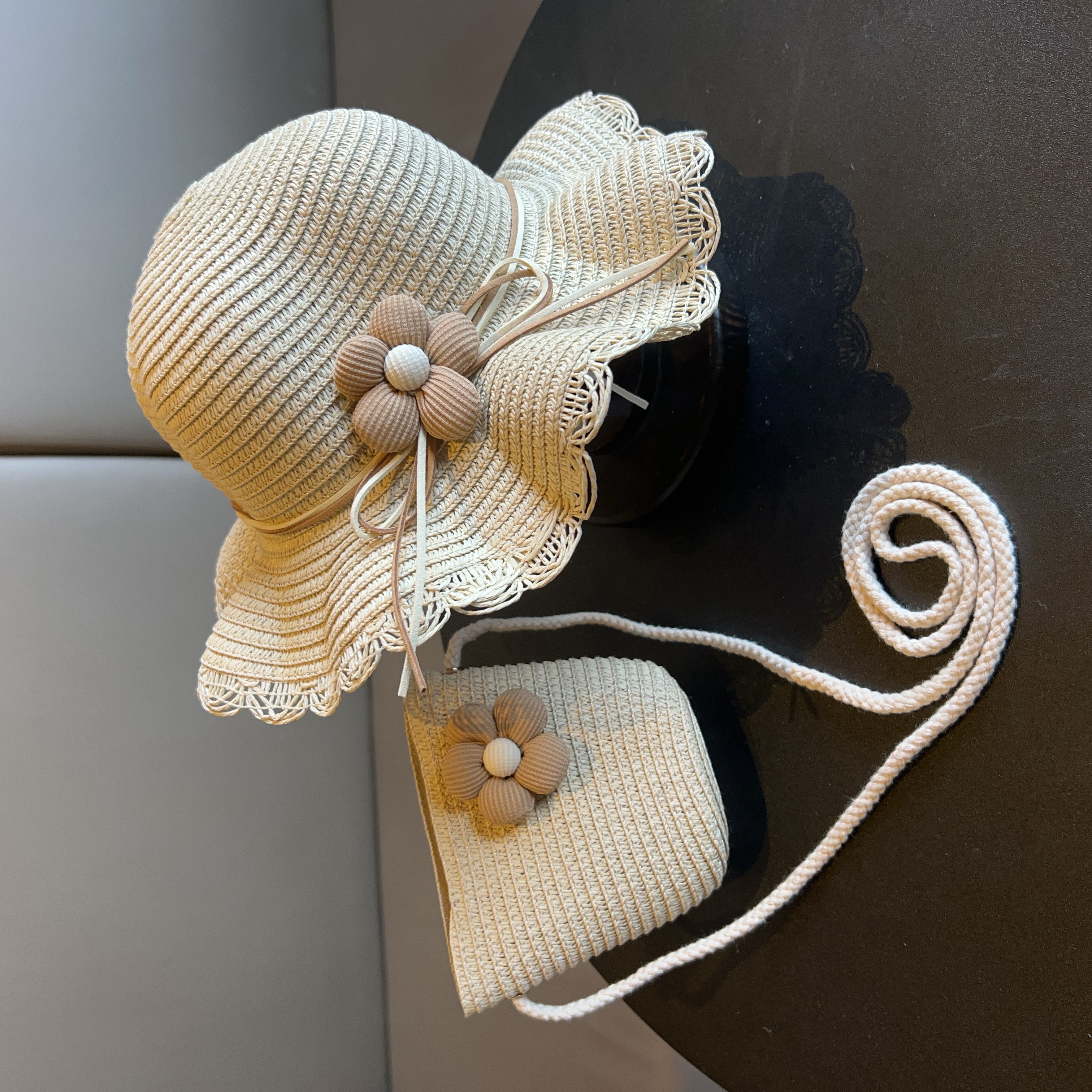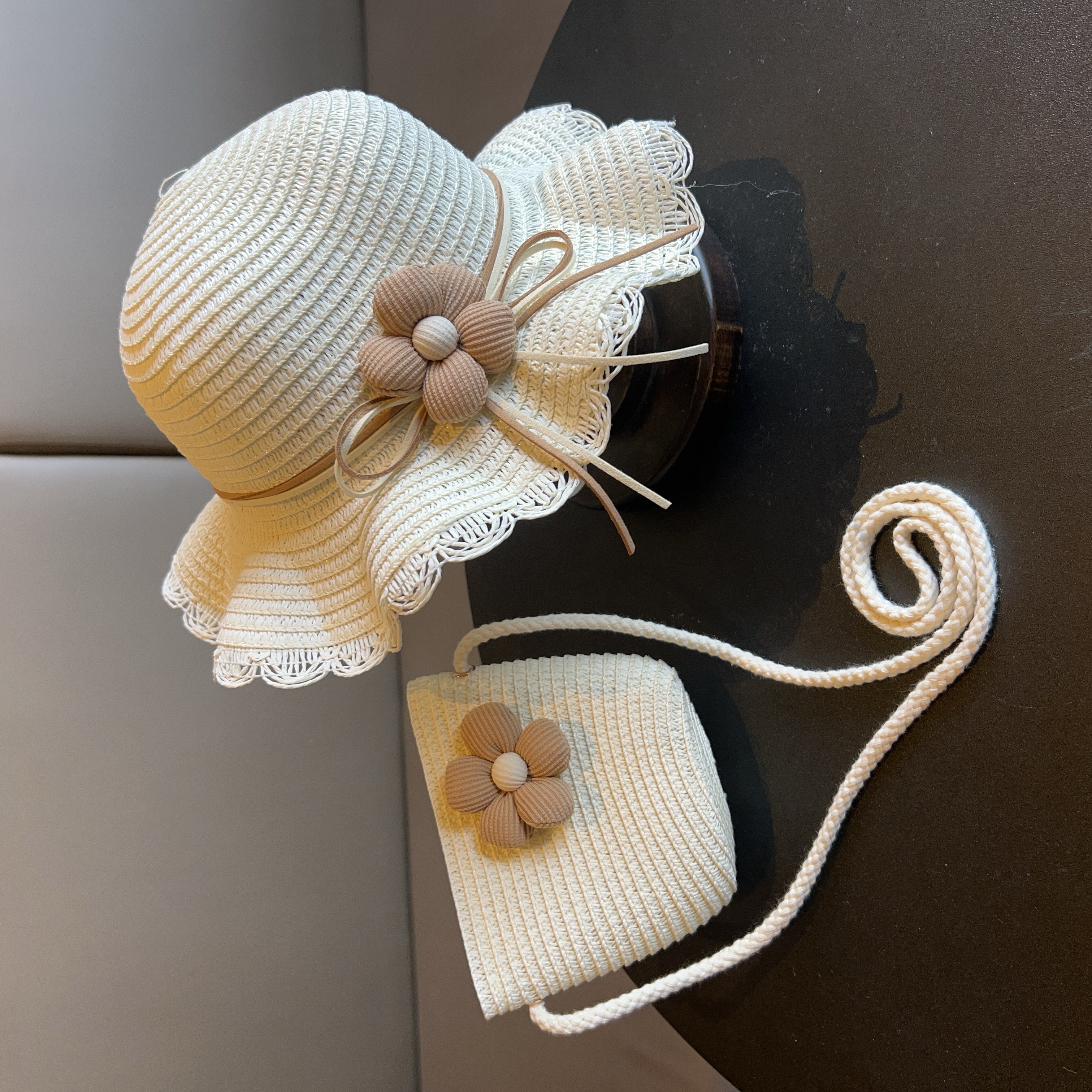 어린이 짠 가방 모자 여름 어린 소녀 태양 모자 밀짚 모자 크로스 바디 가방 세트 배낭 동전 지갑