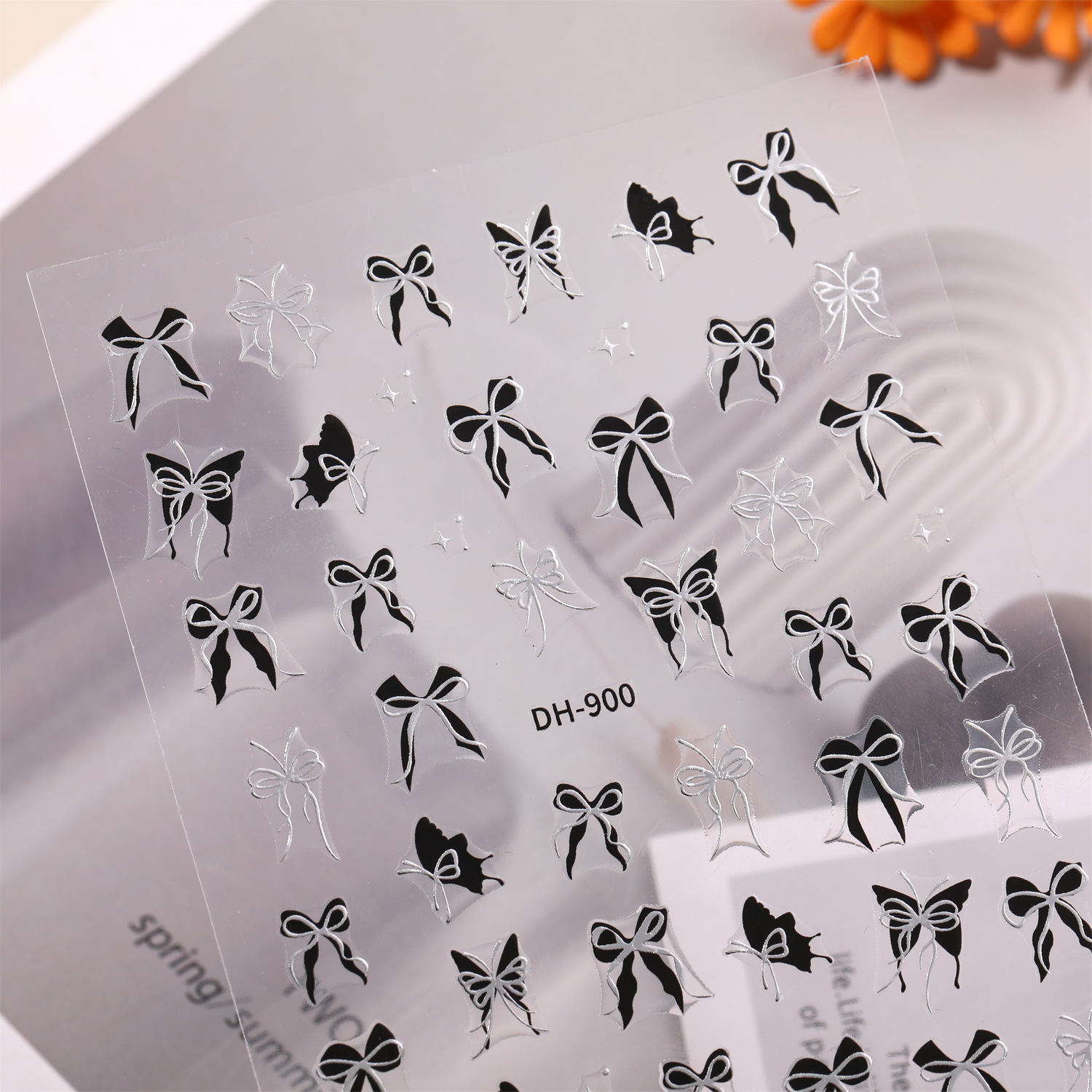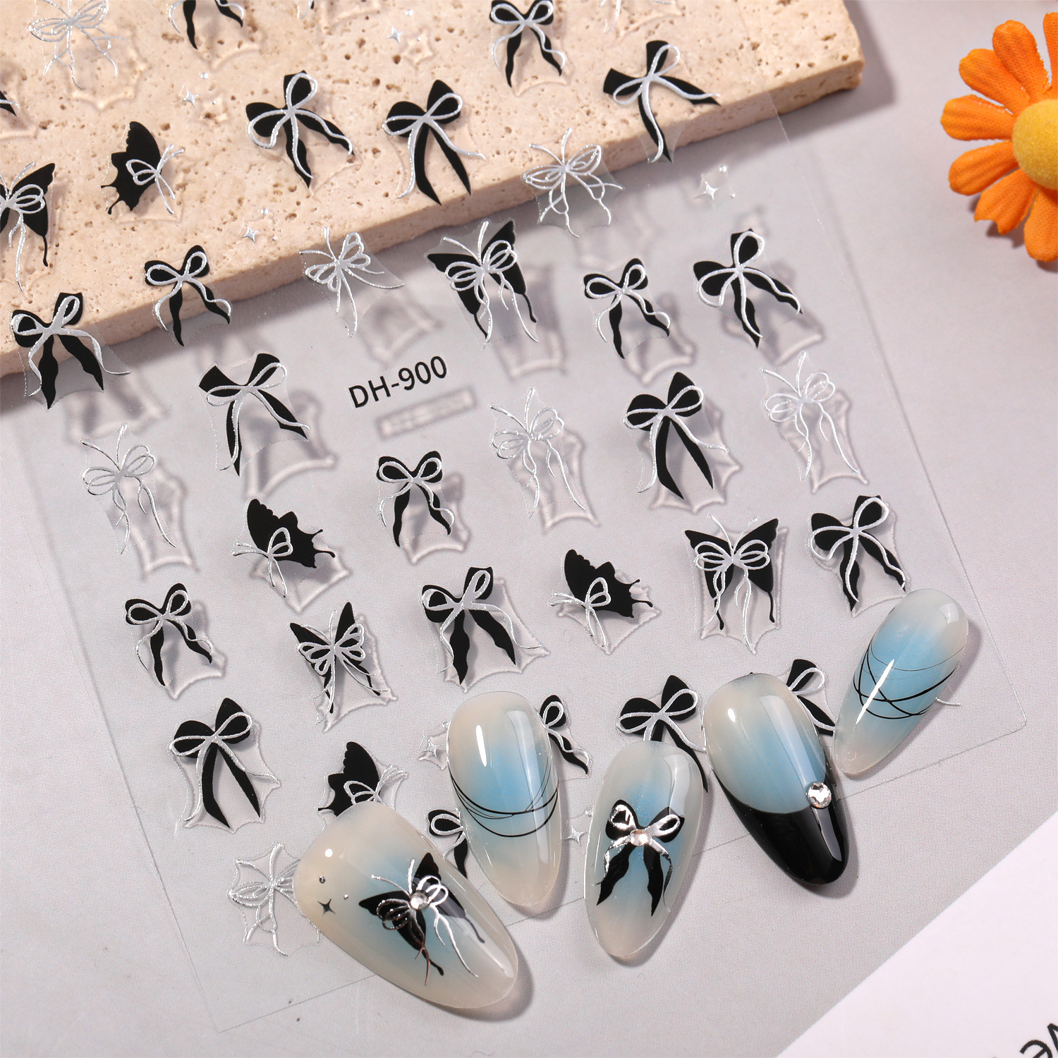 핫 스탬핑 나비 네일 스티커 접착제 뒷면이있는 플랫 절묘한 핫 스탬핑 실버 나비 네일 아트 스티커 쥬얼리 DH900