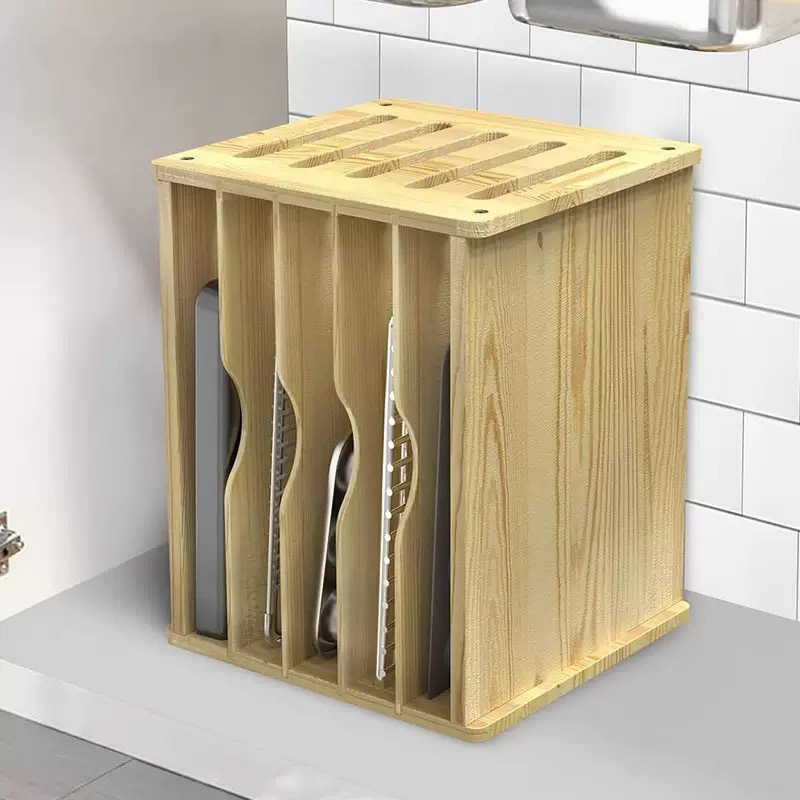 국경 간 대나무 트레이 디바이더 주방 수직 트레이 보관함 바베큐 레스토랑 베이킹 팬 뚜껑 정리 보관함스토어 가기