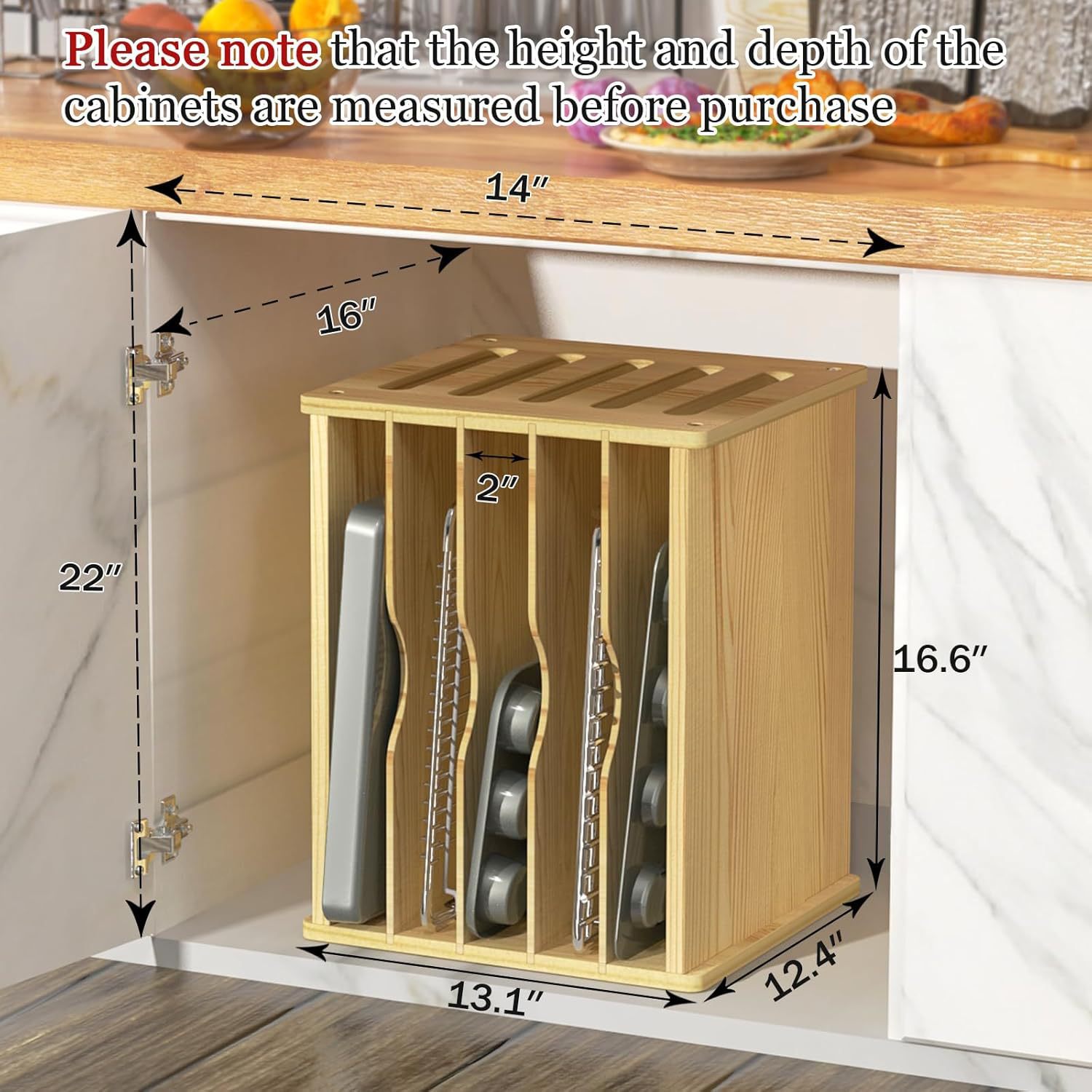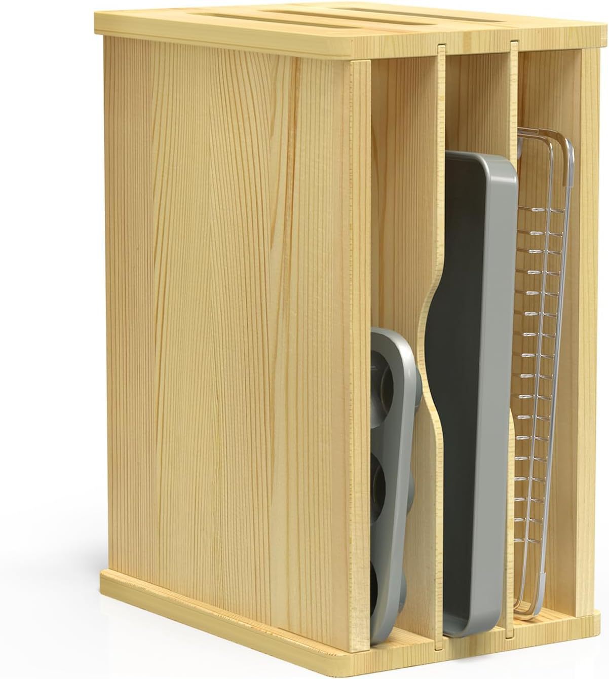 국경 간 대나무 트레이 디바이더 주방 수직 트레이 보관함 바베큐 레스토랑 베이킹 팬 뚜껑 정리 보관함