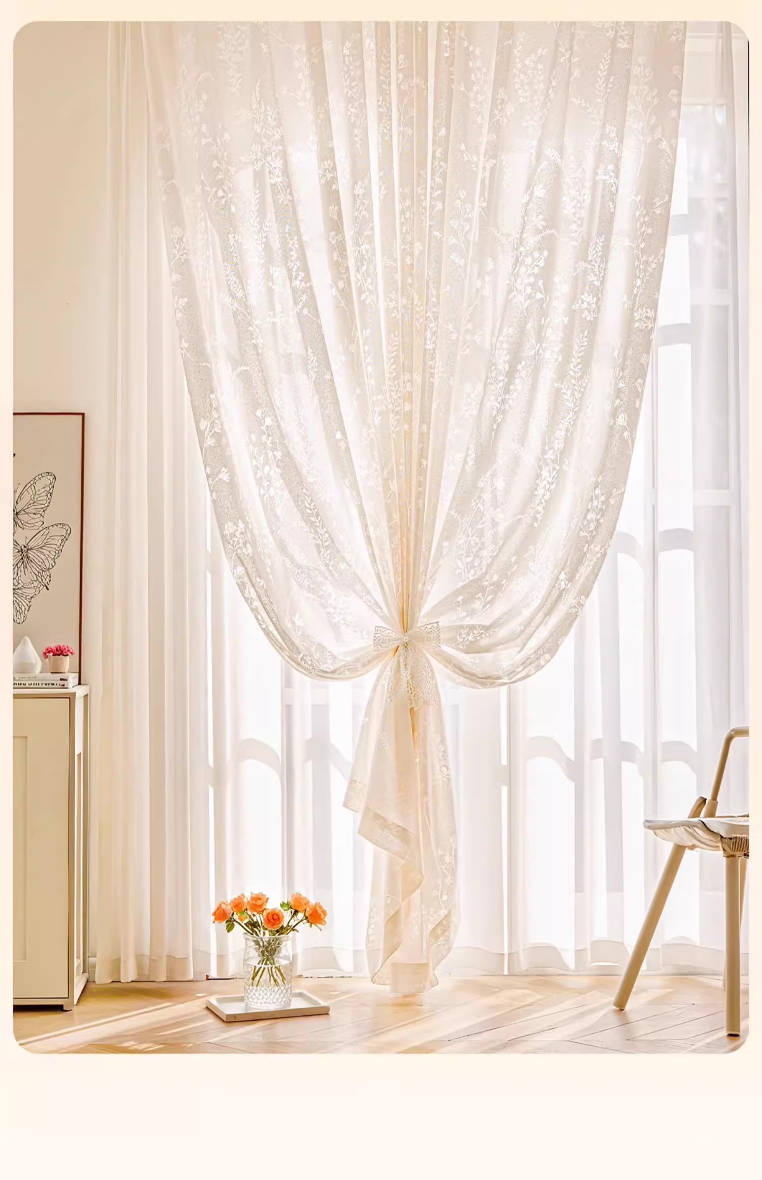 ✅ Moon Branch 그림자 커튼 프랑스 커튼 빛 차단 2025 새로운 침실 느낌 흰색 거즈 빛 투과성 거실스토어 가기