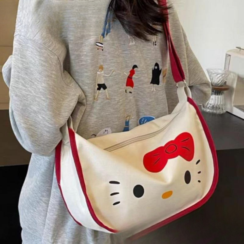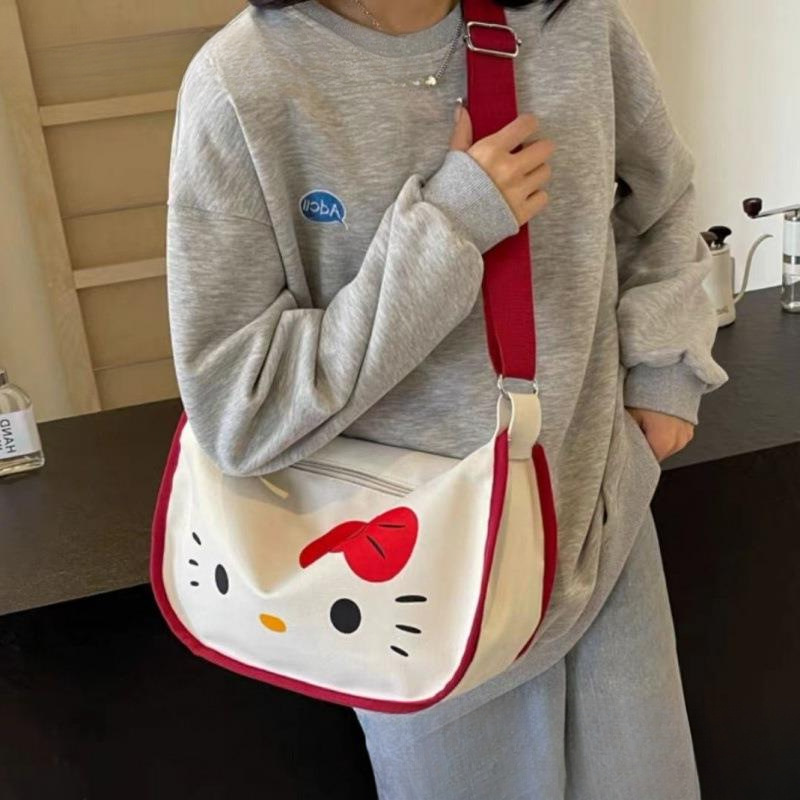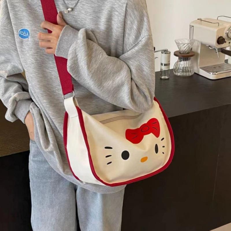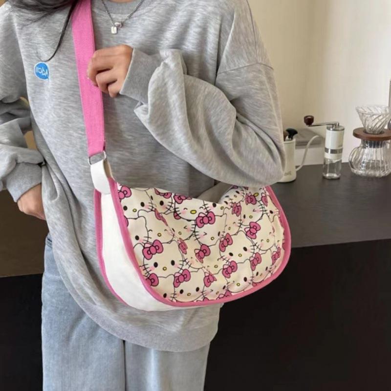 日系卡通帆布包女新款小众设计可爱上课百搭单肩马鞍包斜挎饺子包