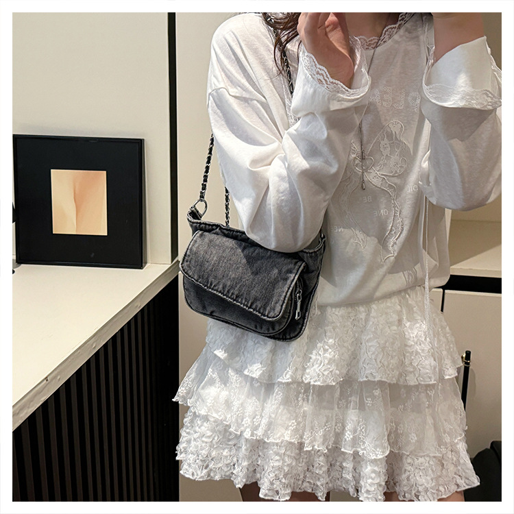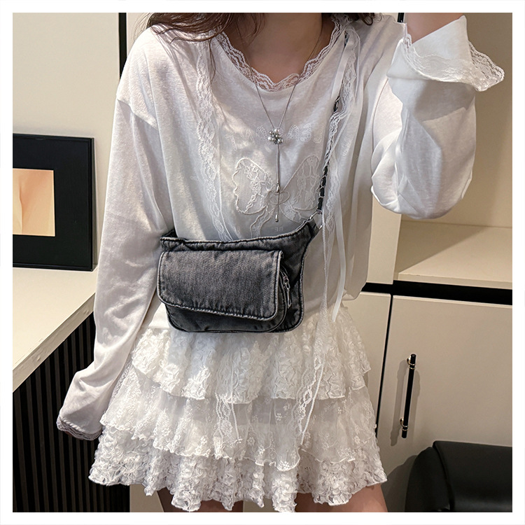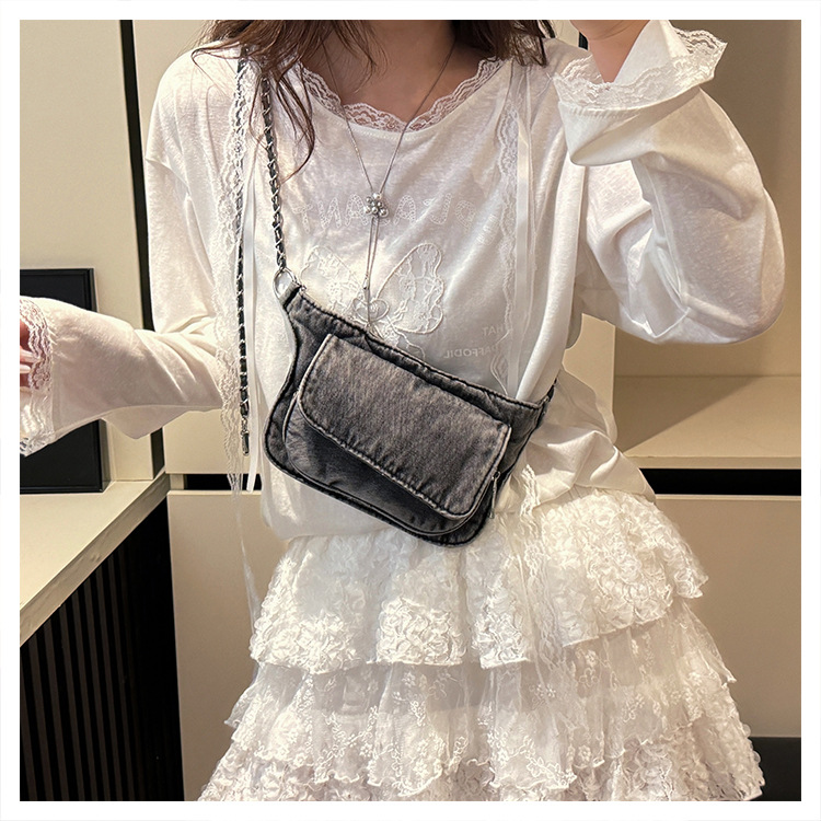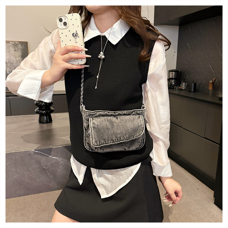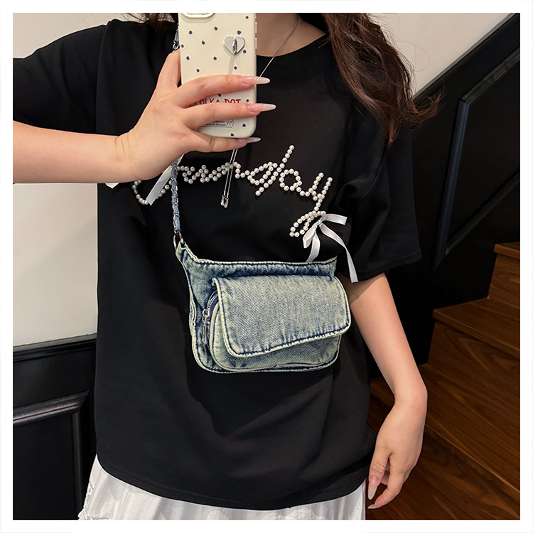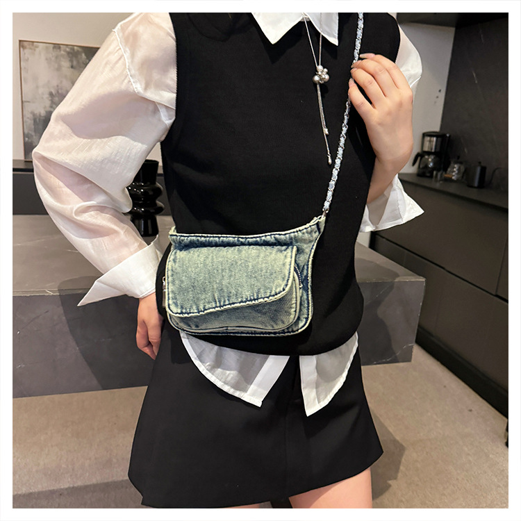 여성을위한 복고풍 캐주얼 작은 가방 2025 여름 새로운 패션 데님 미니 휴대 전화 가방 서양식 예술적 어깨스토어 가기