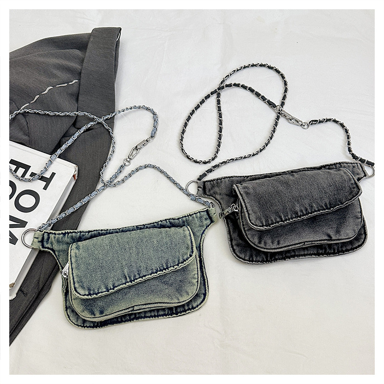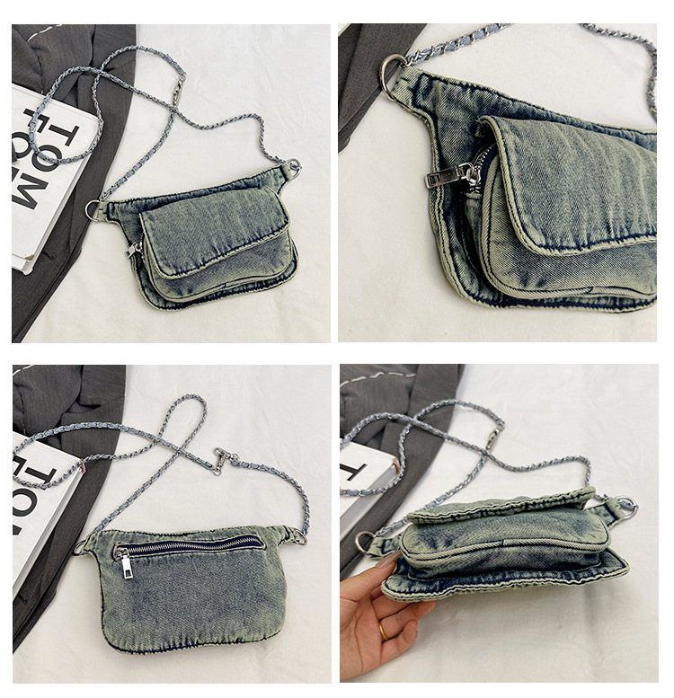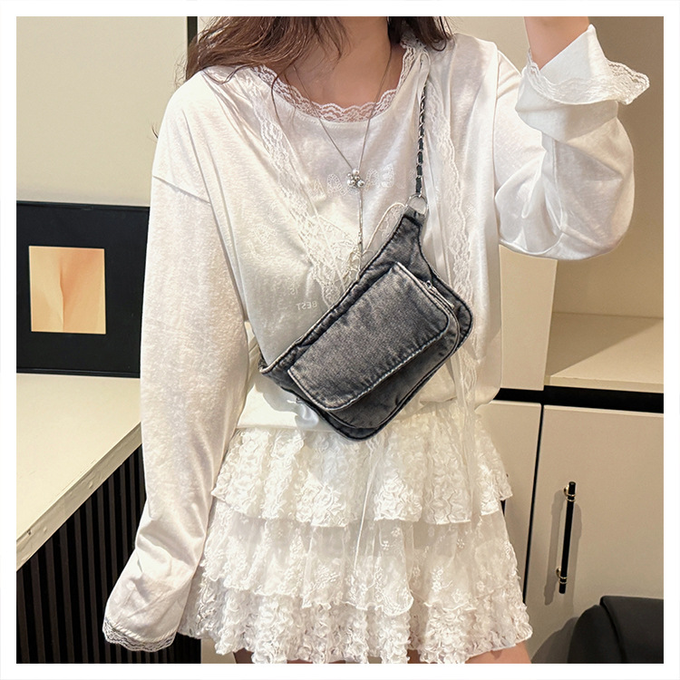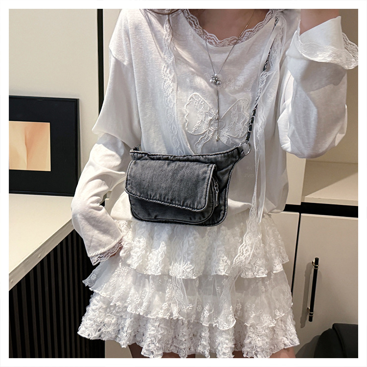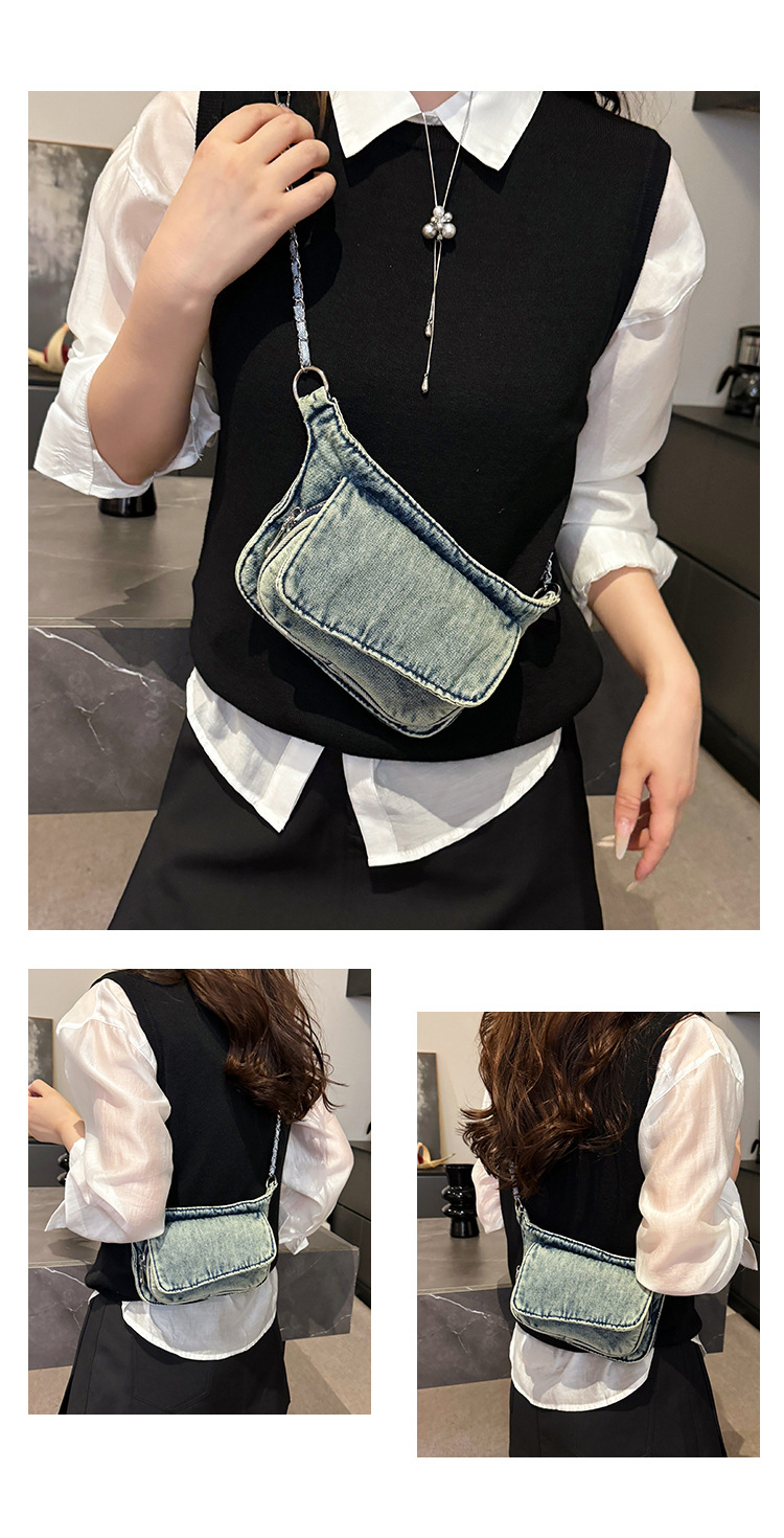 여성을위한 복고풍 캐주얼 작은 가방 2025 여름 새로운 패션 데님 미니 휴대 전화 가방 서양식 예술적 어깨스토어 가기