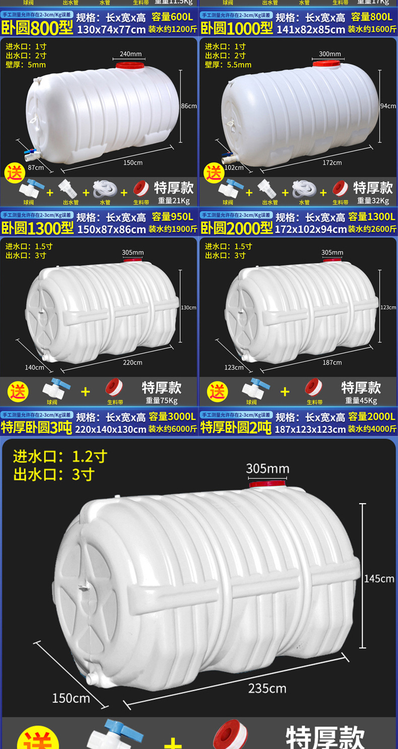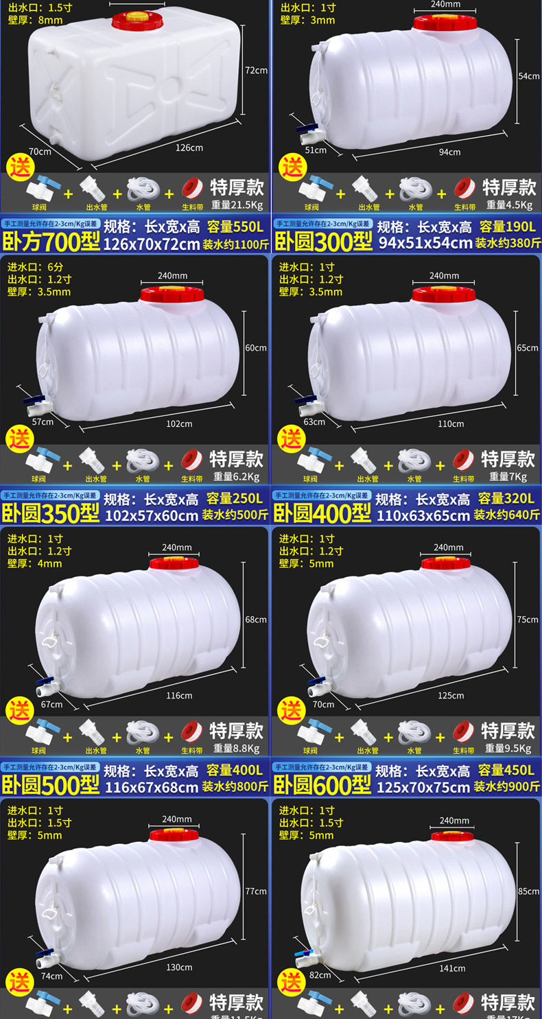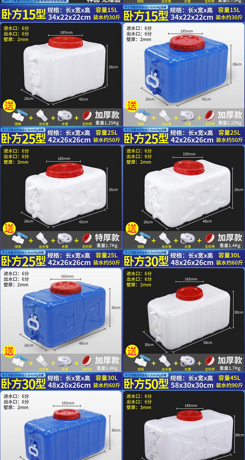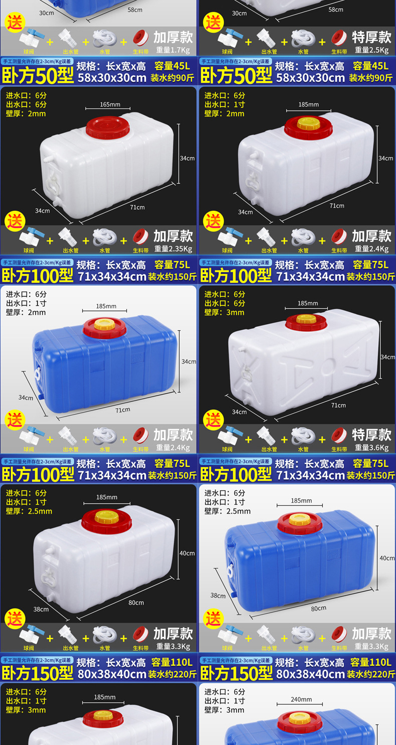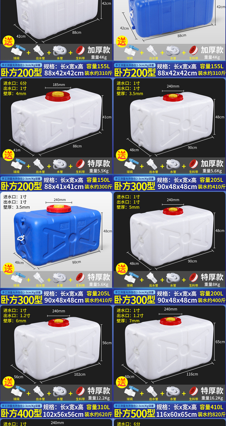 두꺼운 식품 등급 대용량 물 탱크 플라스틱 버킷 수평 직사각형 물 저장 버킷 자동차 탑재 물 탱크 홈 저장 Yihe스토어 가기