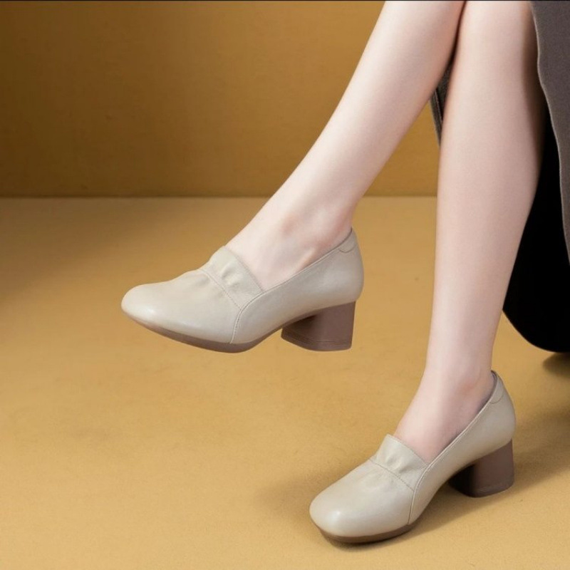 2025년 신상 여름 신발, 어머니 신발, 여성용 부드러운 밑창, 부드러운 표면, 심플한 기질, 중간 굽, 두꺼운 굽 싱글 슈즈, 여성용 중간 신발스토어 가기