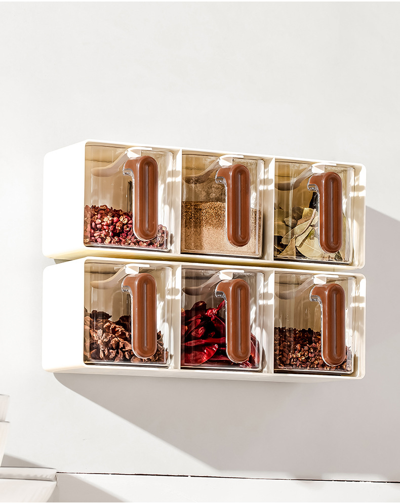 가정용 주방 조미료 상자 향신료 소금 보관 상자 조미료 항아리 멀티 그리드 주방 식품 등급 펀치없는 조미료 항아리스토어 가기