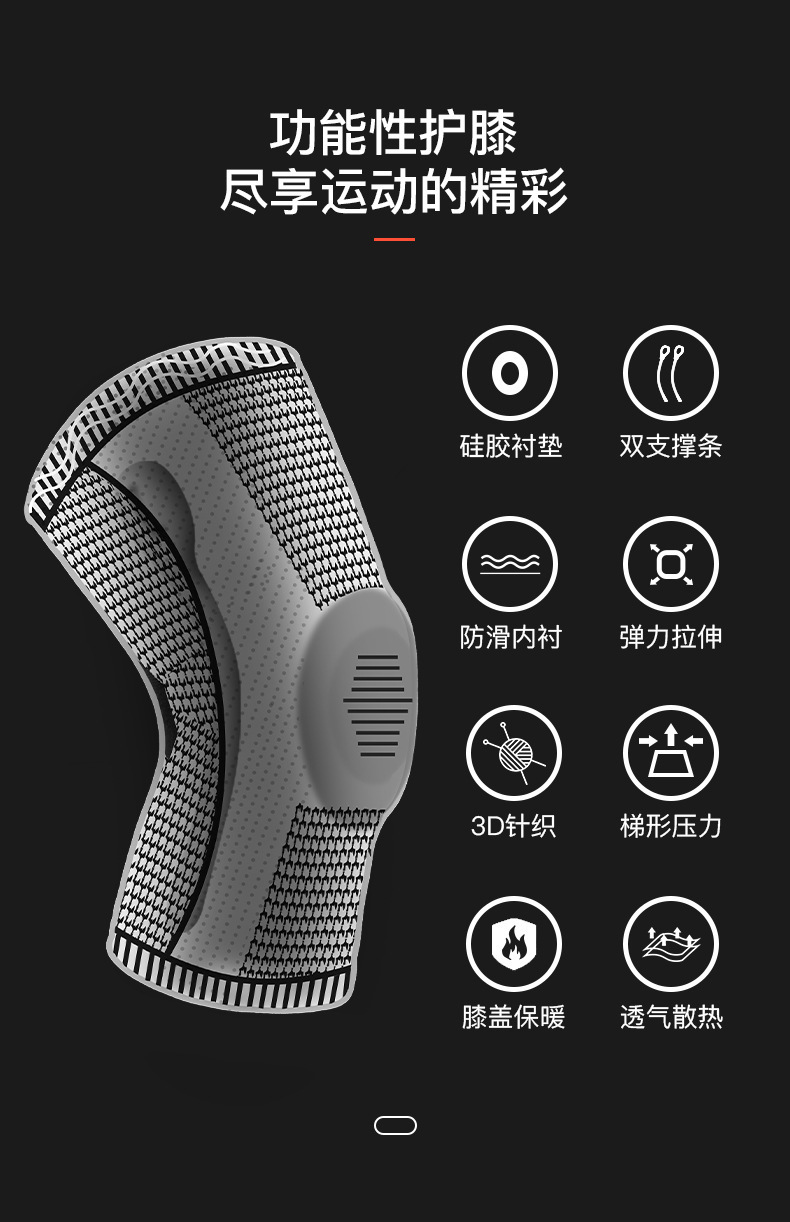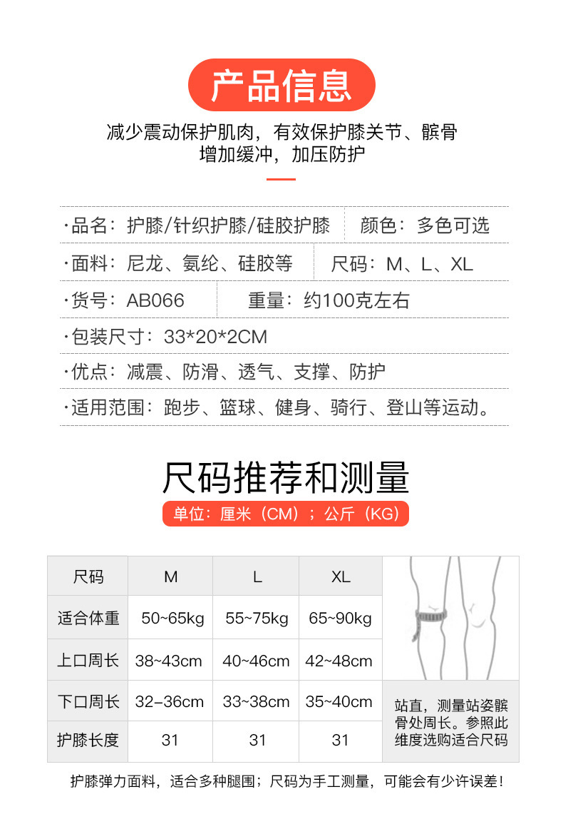 야외 스포츠 여름 가압 실리콘 스프링 통기성 무릎 패드 등산 달리기 농구 사이클링 니트 무릎 패드 커버